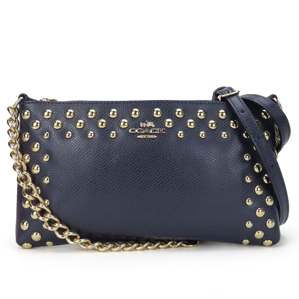 COACH Shoulder Bag F53140 leather Navy Studs Women Used Authentic