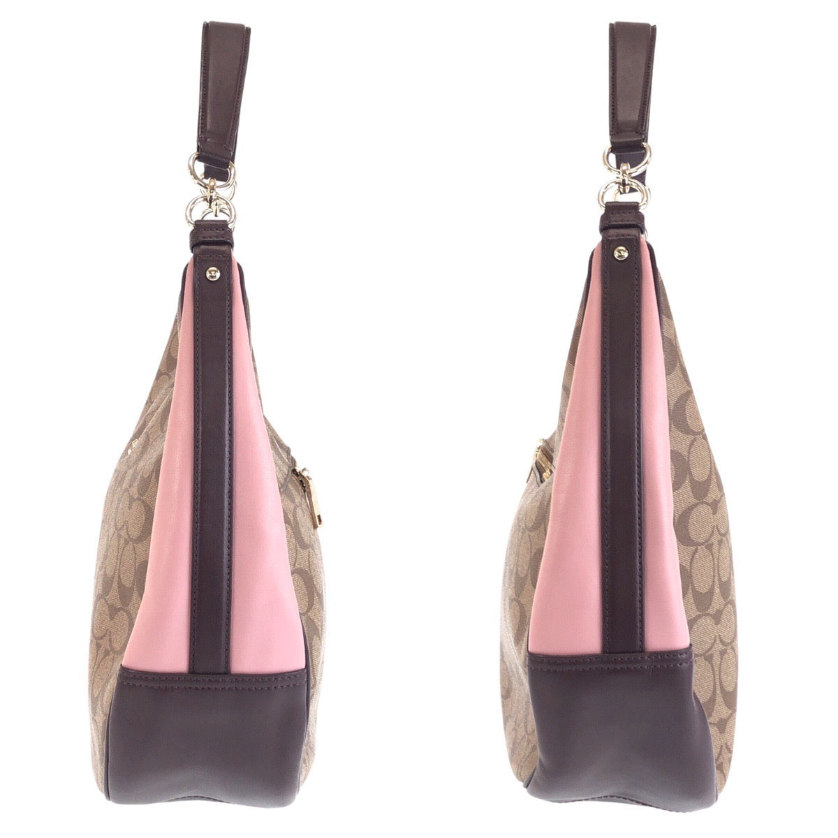 COACH Shoulder Bag leather Beige Multicolor Gold Metal Crossbody Shoulder Bag Signature Women Used Authentic