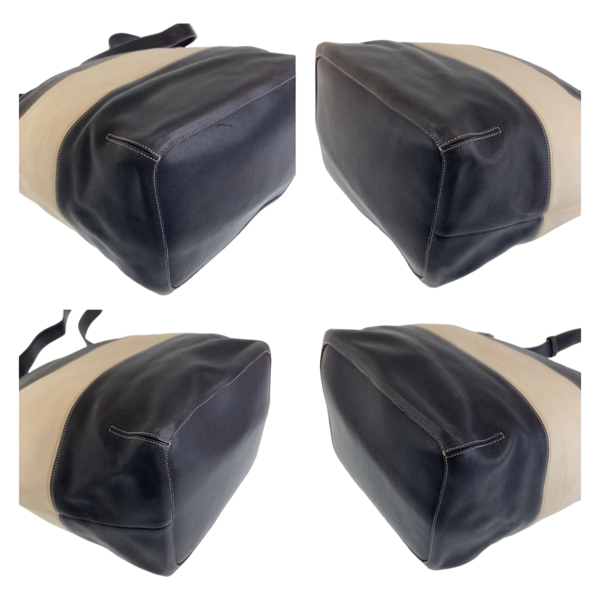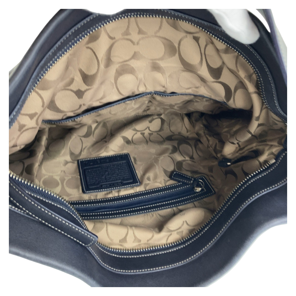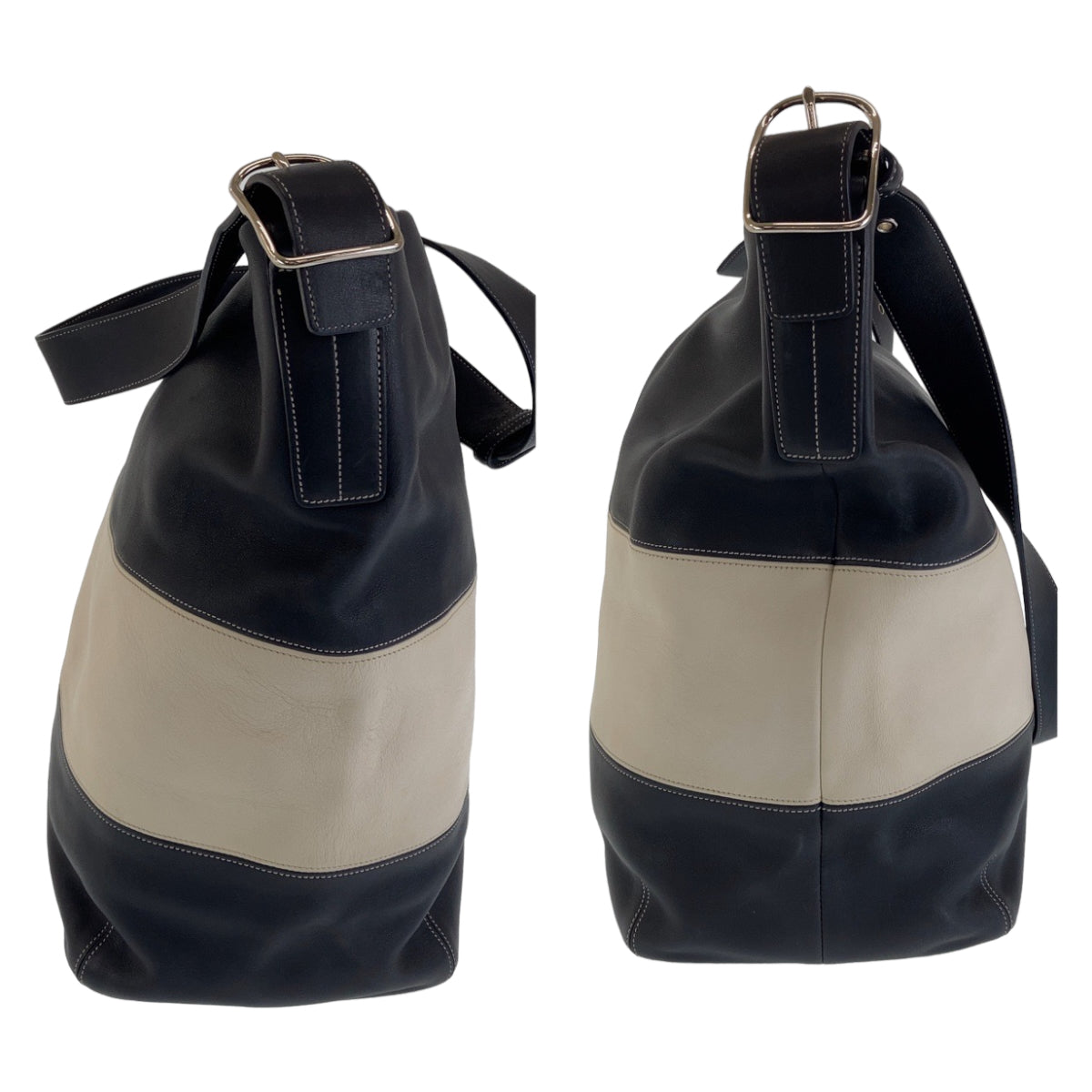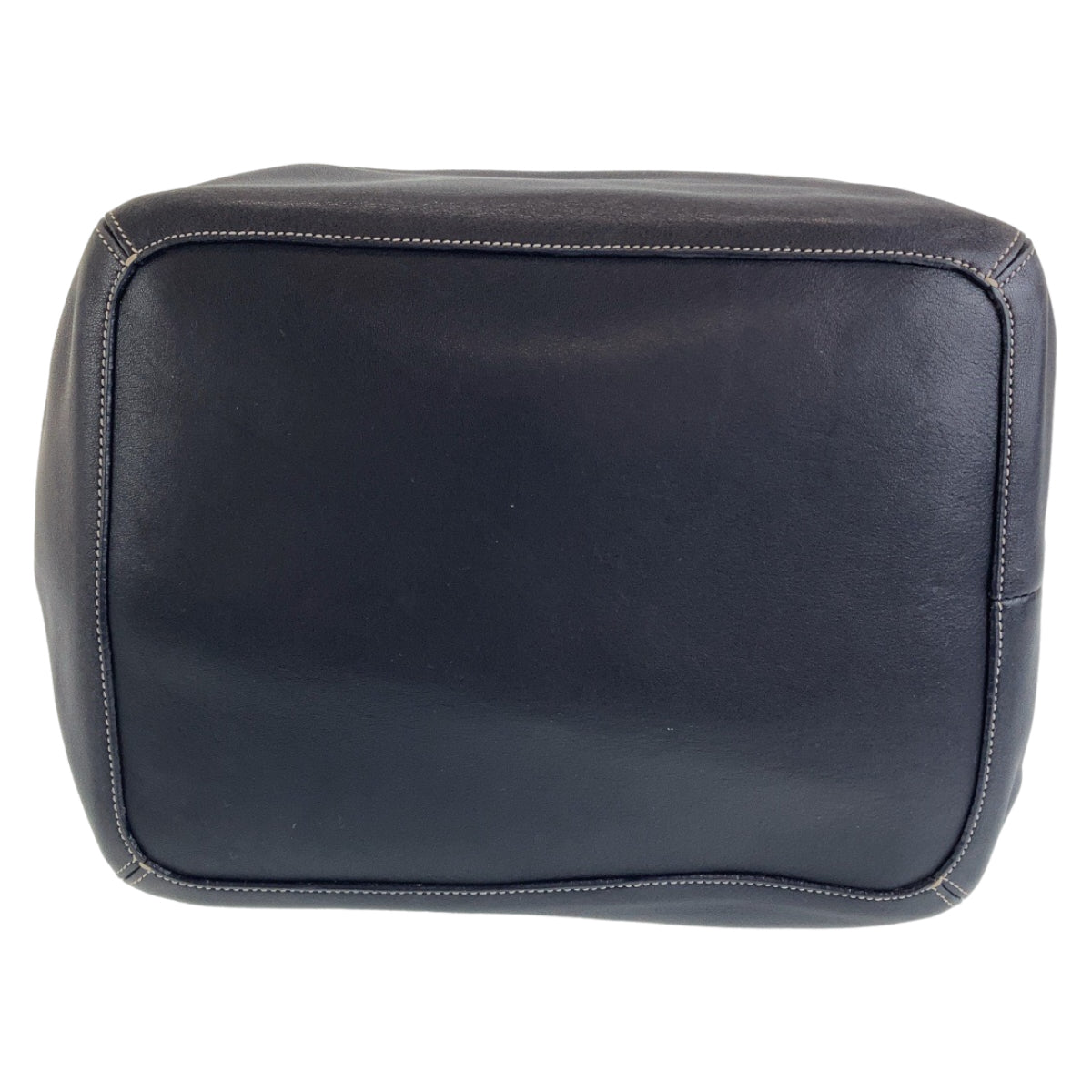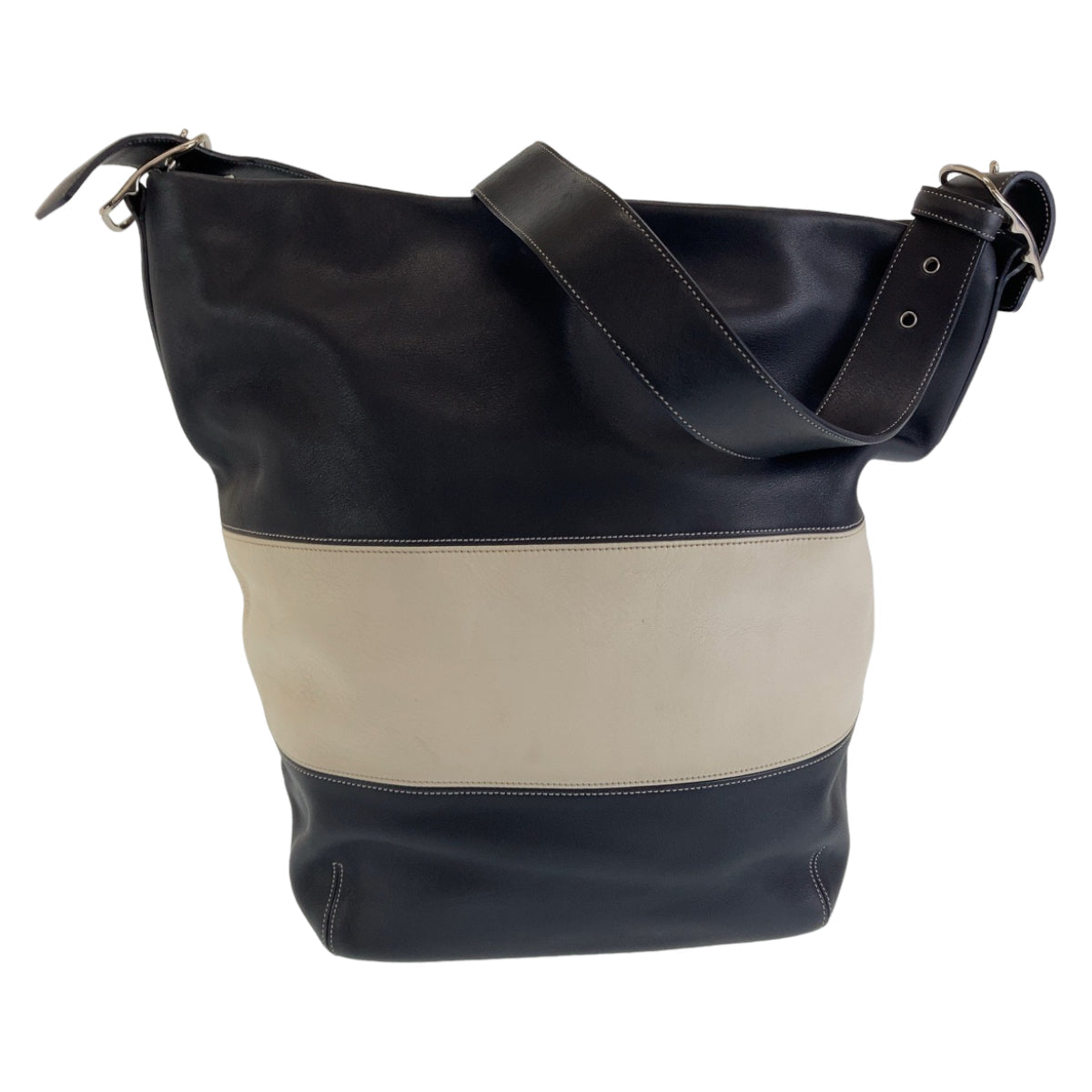 COACH Shoulder Bag leather Black White SilverMetal Shoulder Bag Duffle bag Hobo Bucket Women Used Authentic