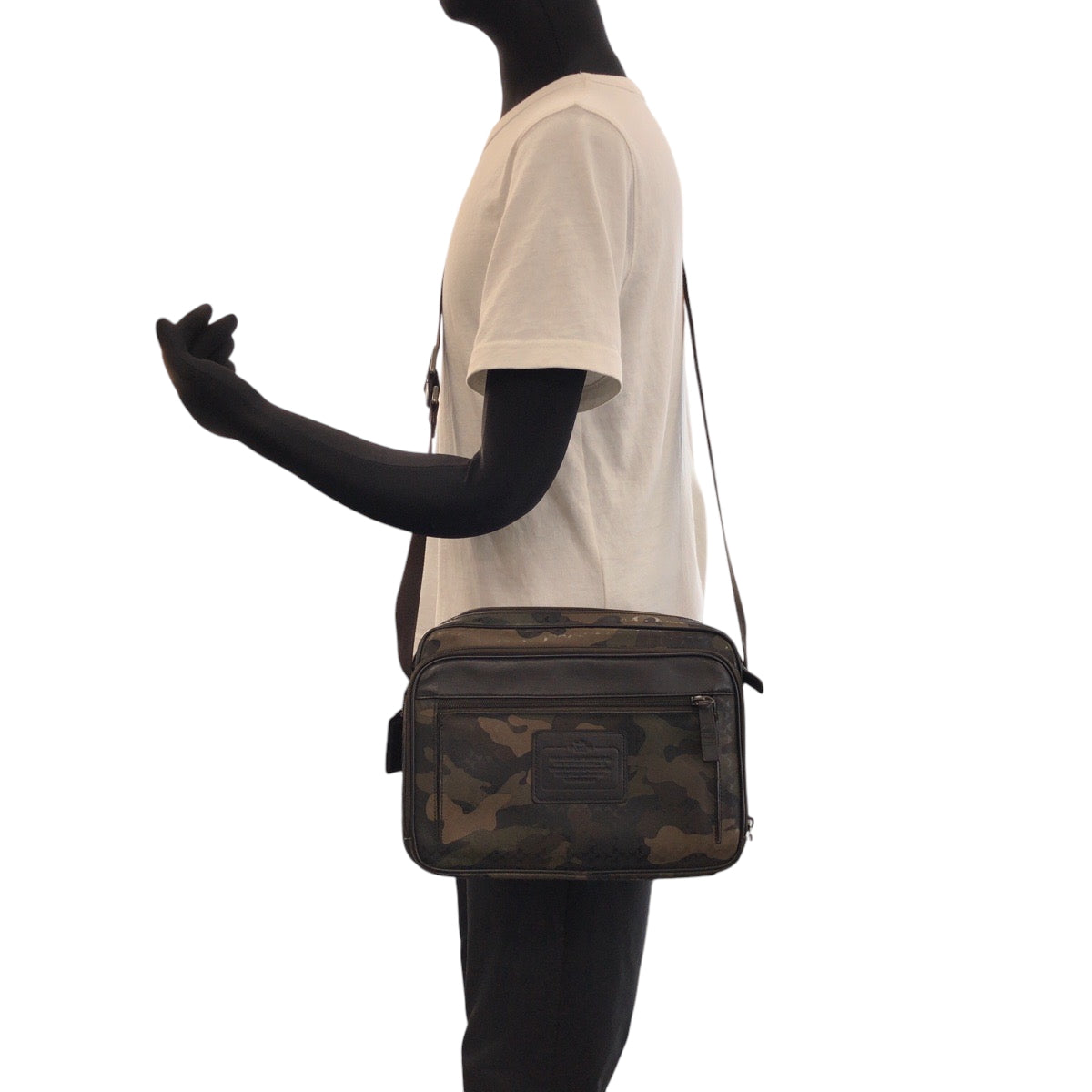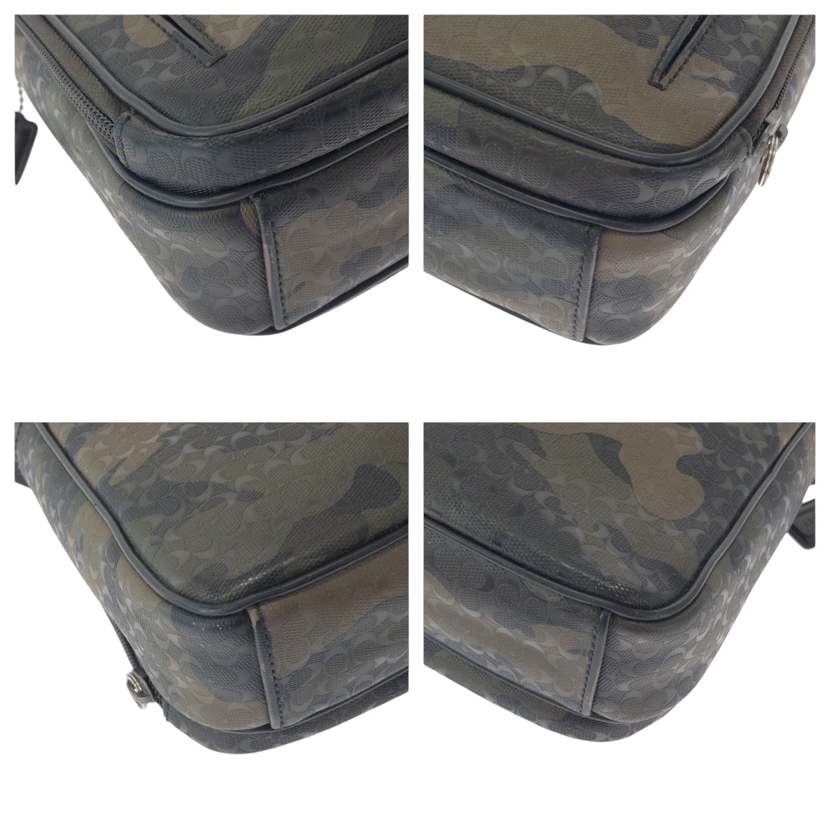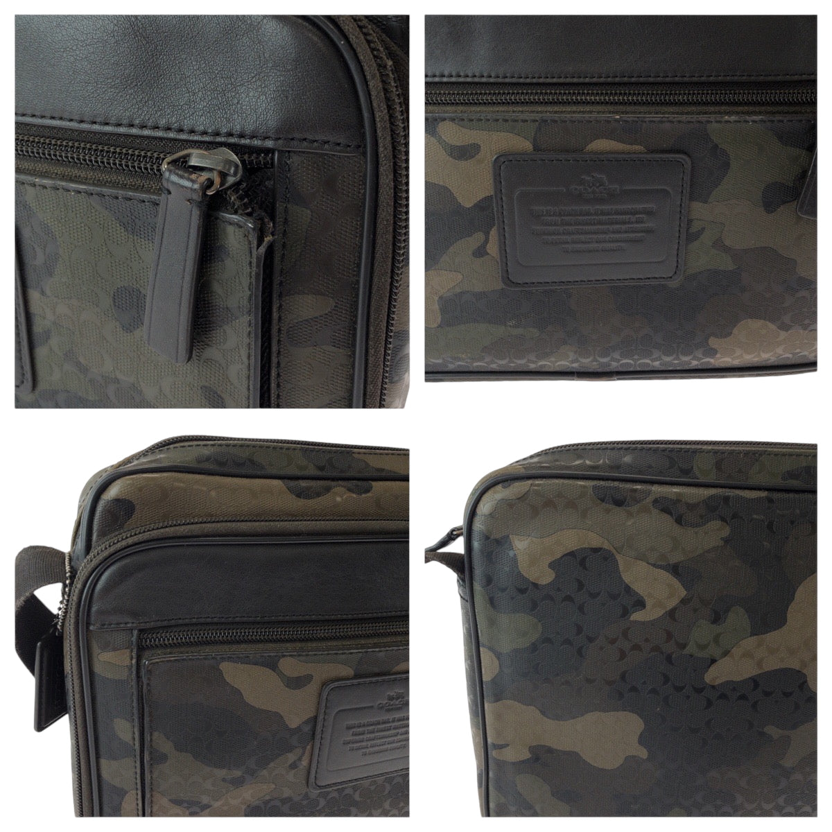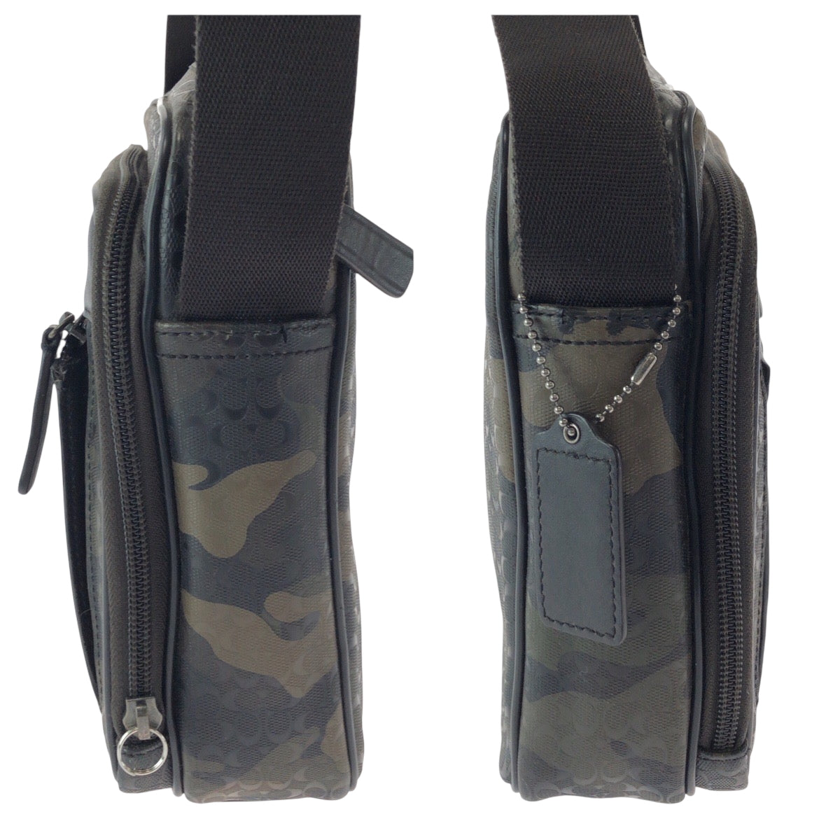 COACH Shoulder Bag leather Khaki Black SilverMetal Shoulder Bag pochette Signature Camouflage Pattern mens Used Authentic