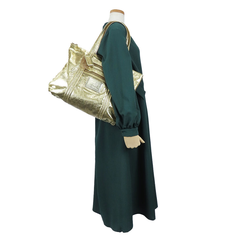 COACH Tote Bag 13820 leather gold Poppy Women Used Authentic