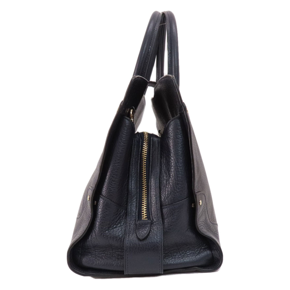 COACH Tote Bag 37167 leather Navy logoMetal 2WAY Women Used Authentic
