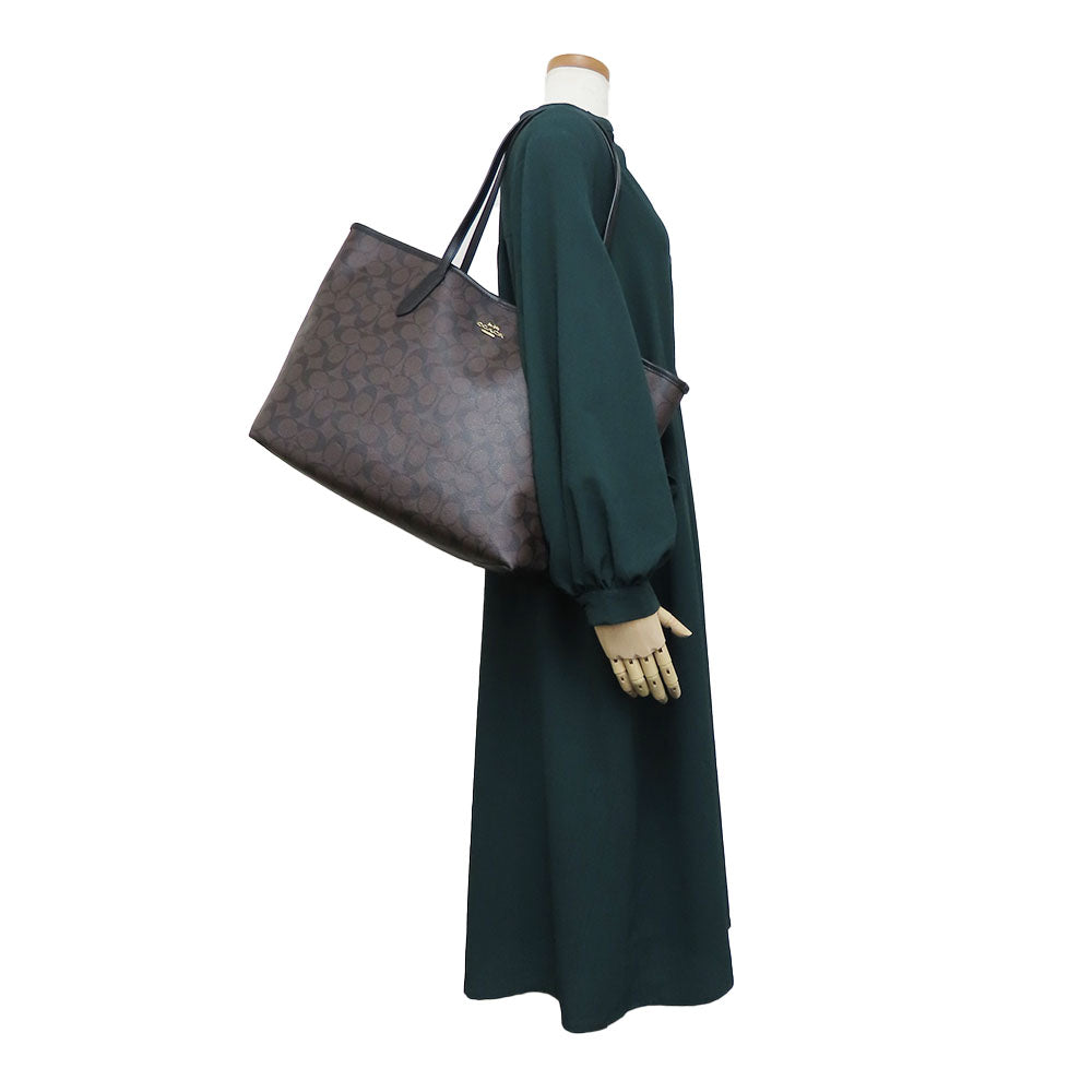 COACH Tote Bag 5696 PVC, Leather black Women Used Authentic