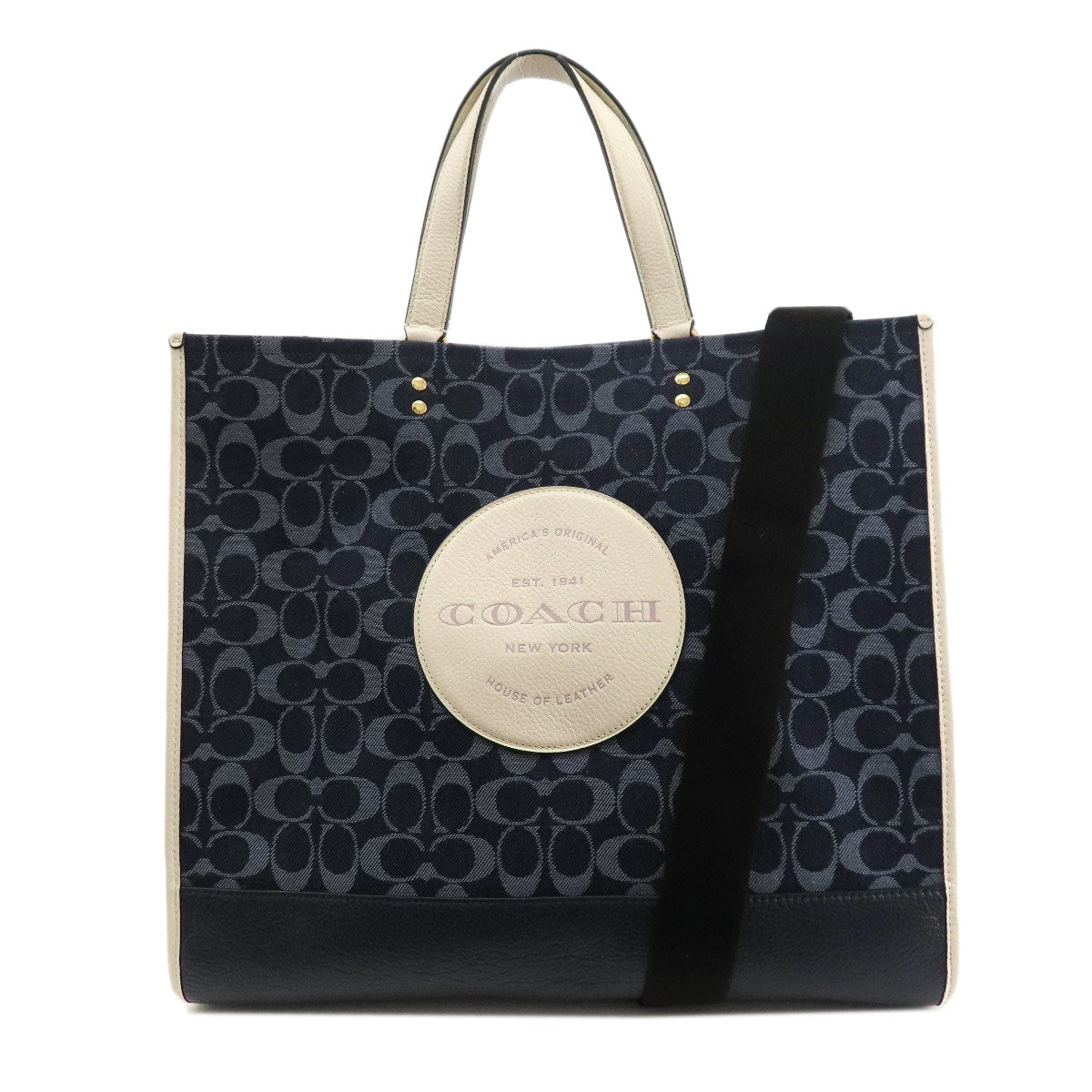 COACH Tote Bag C2827 canvas blue Signature 2WAY Women Used Authentic