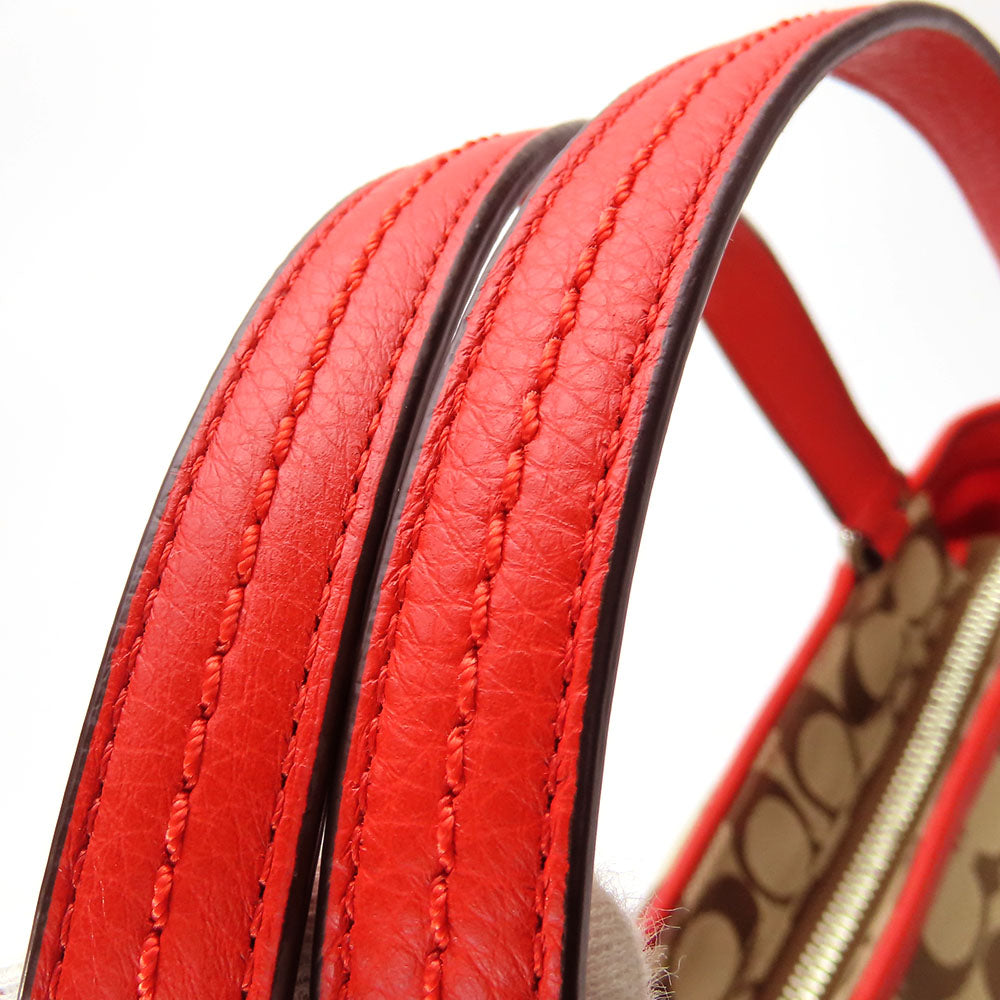 COACH Tote Bag F23297 Canvas, Leather Red Women Used Authentic