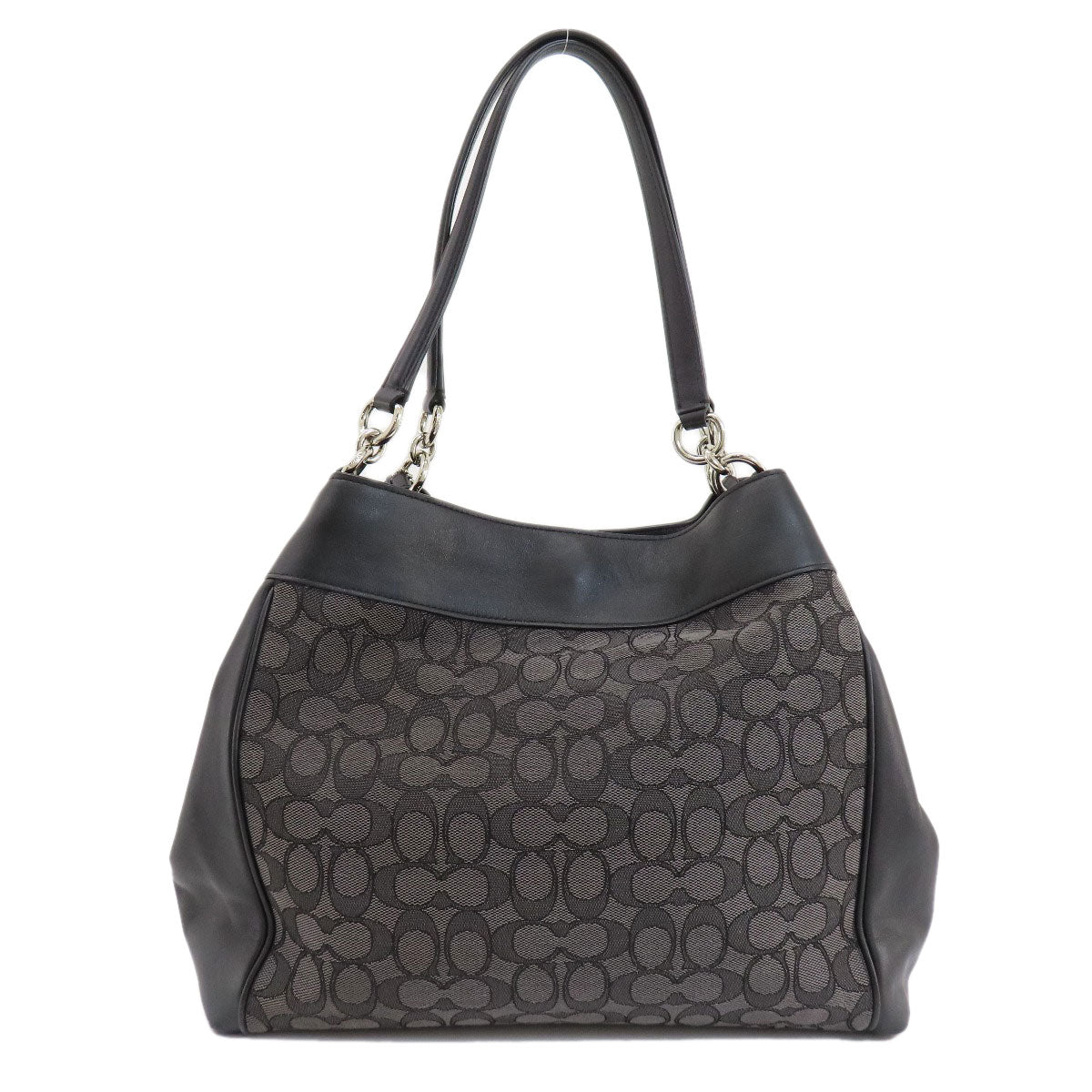COACH Tote Bag F57612 canvas black Signature Women Used Authentic