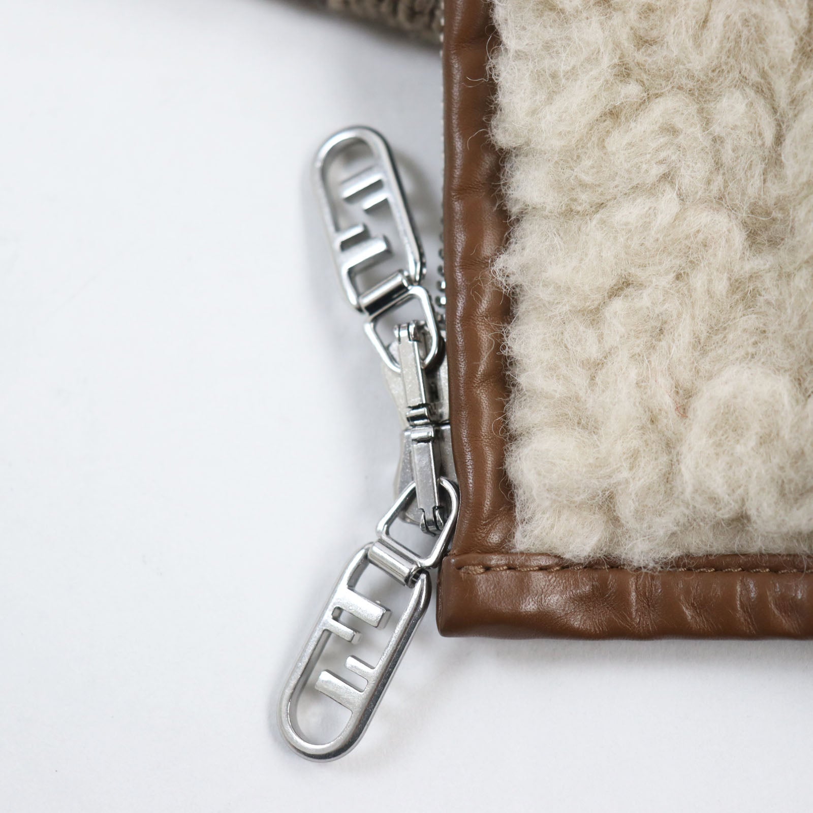 FENDI Blouson FW1163 Outer: 57% wool, Outer: 43% alpaca, Part: leather, Part: 100% wool, Lining: 100% cupra, Filling: 100% polyester Beige brown mens 46 Used Authentic