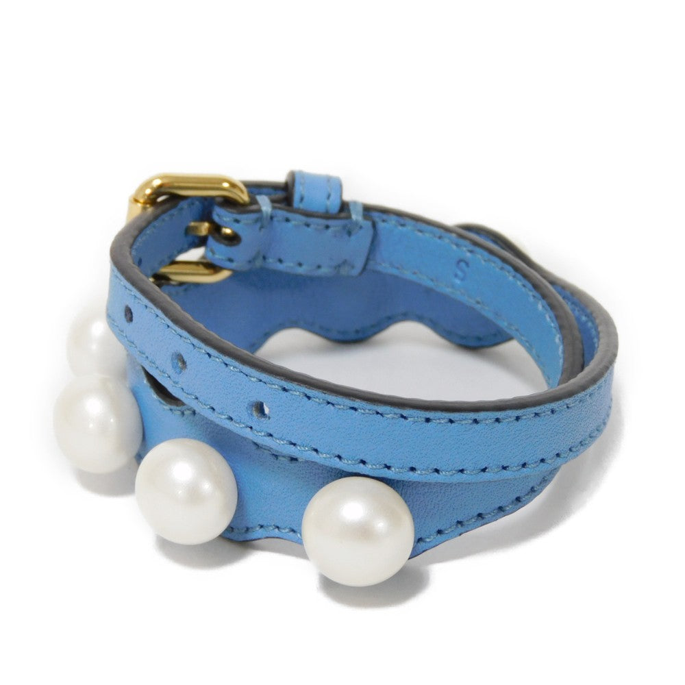 FENDI bracelet Calf leather Light blue logo engraving Bracelet Bijou Pearl