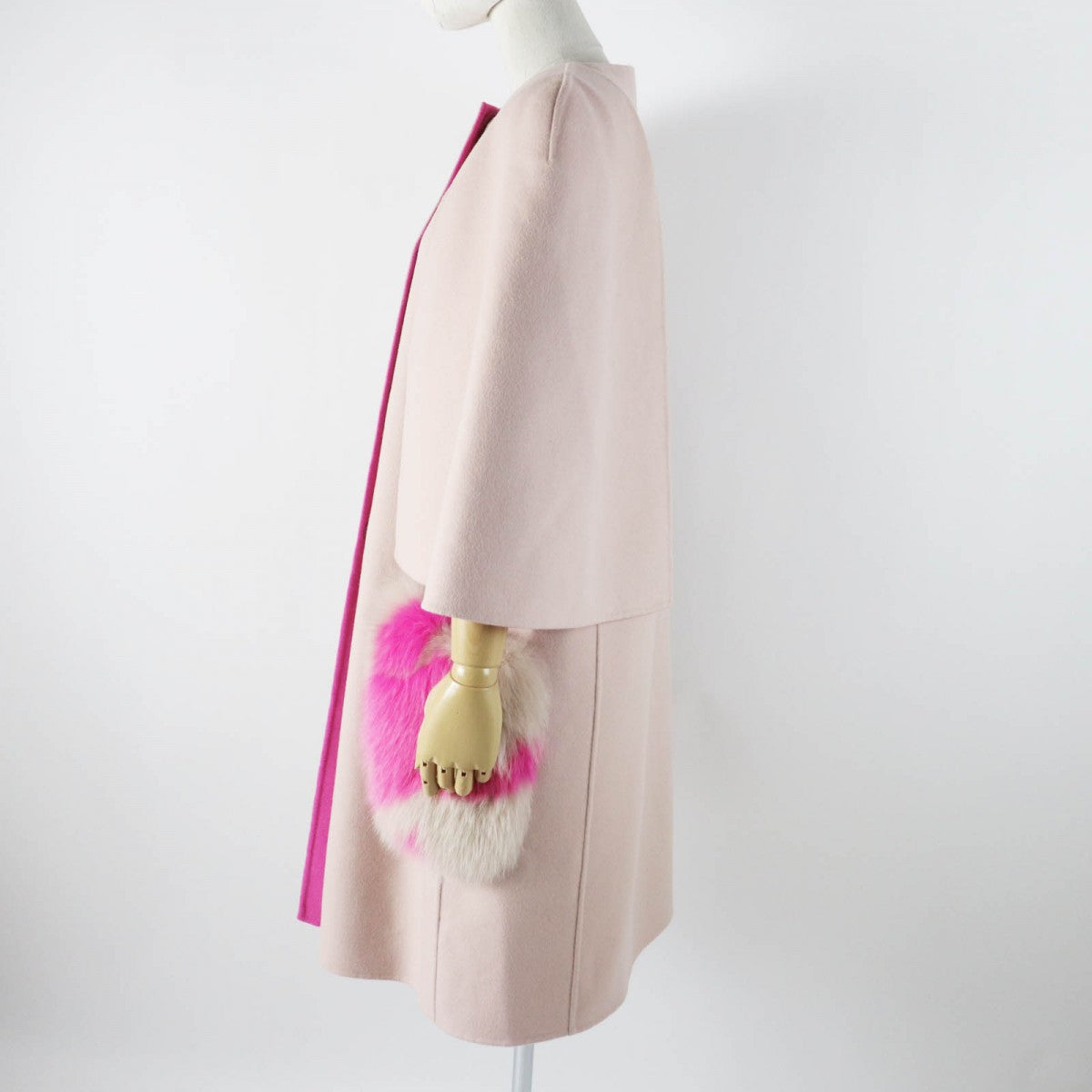 FENDI coat FF8458 W1D Outer: 100% wool, fur: fox pink Women 46 Used Authentic