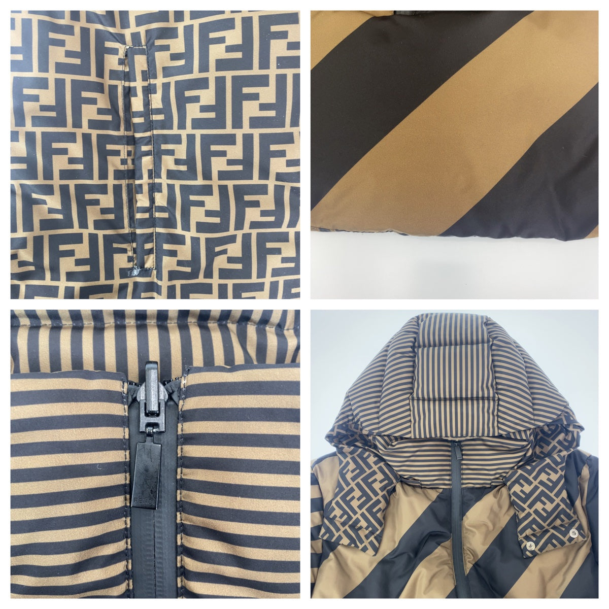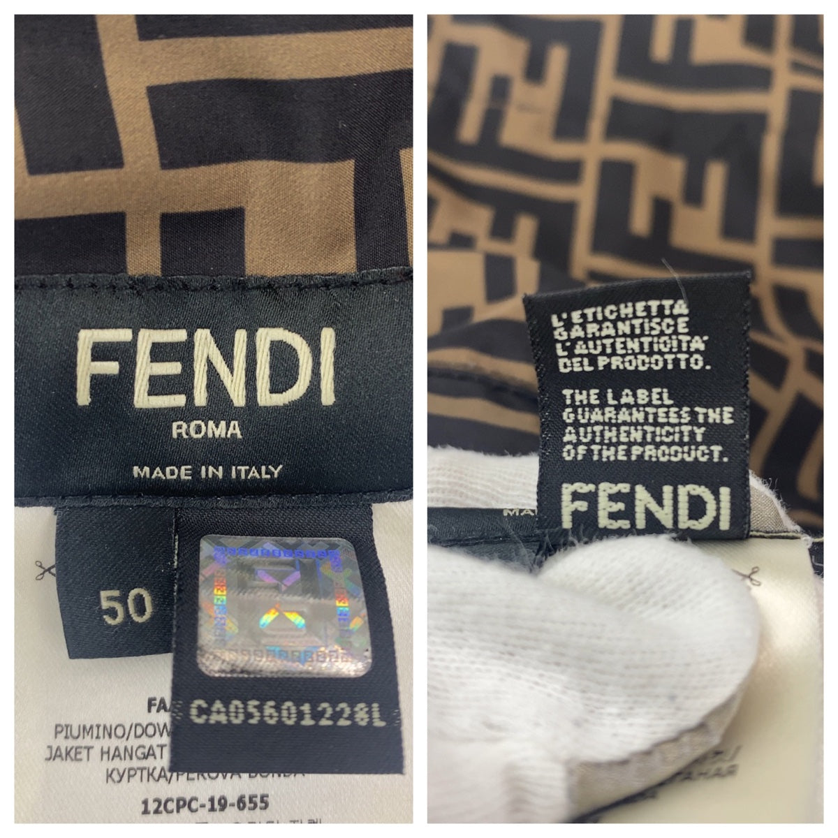 FENDI Down jacket FAA582 A790 polyester khaki black black Down Jacket Puffer Jacket Zucca Pattern Pecan Pattern mens 50 Used Authentic