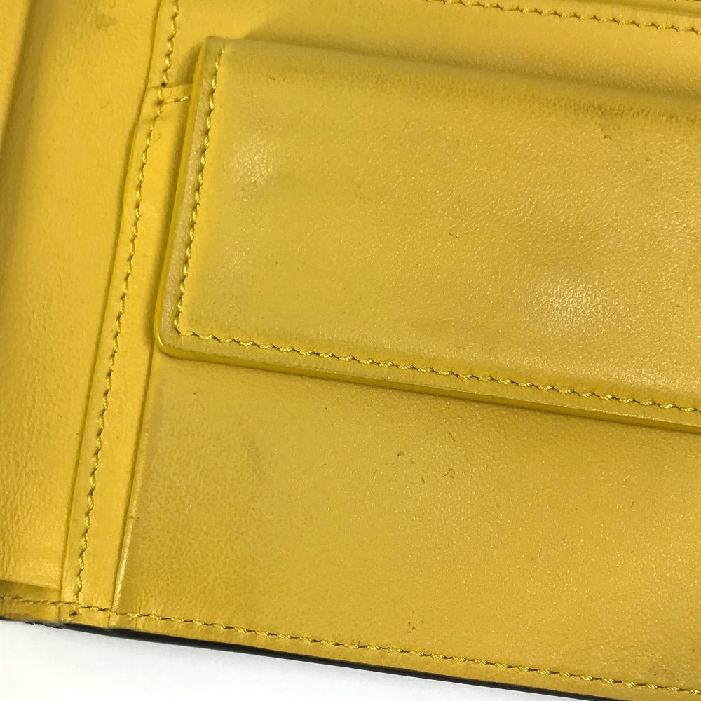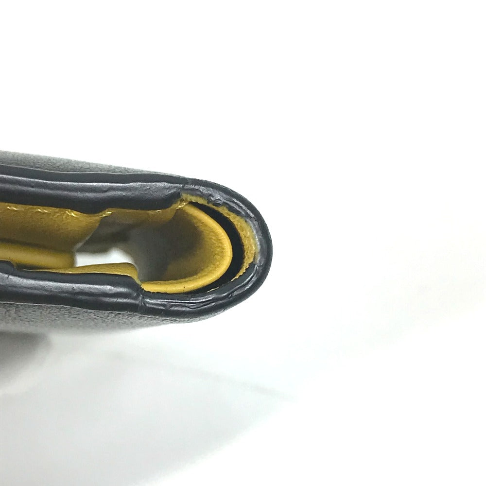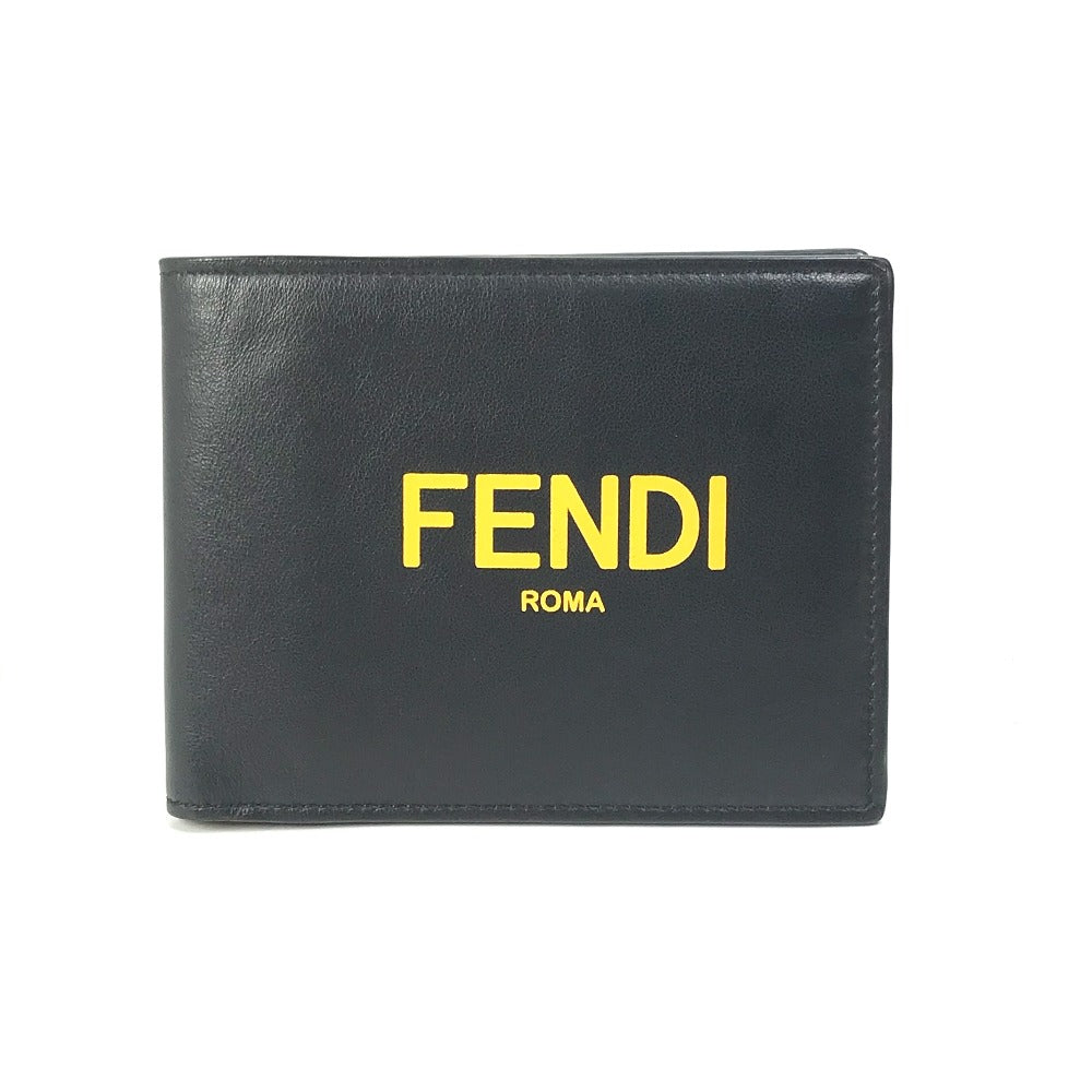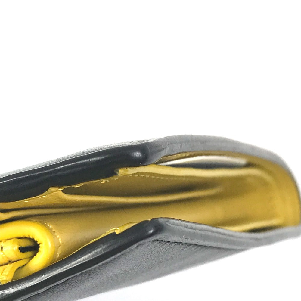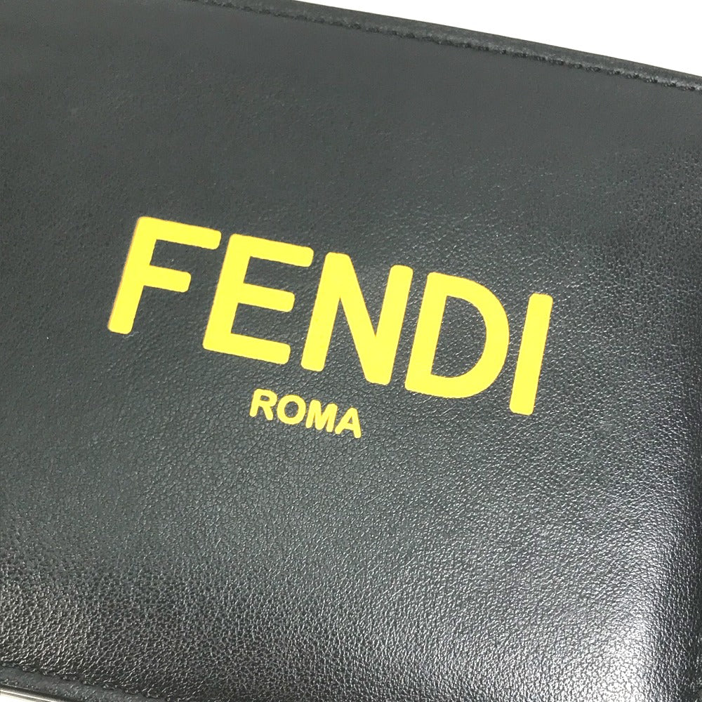 FENDI Folded wallet 7M0001 leather Black x yellow logo mens Used Authentic