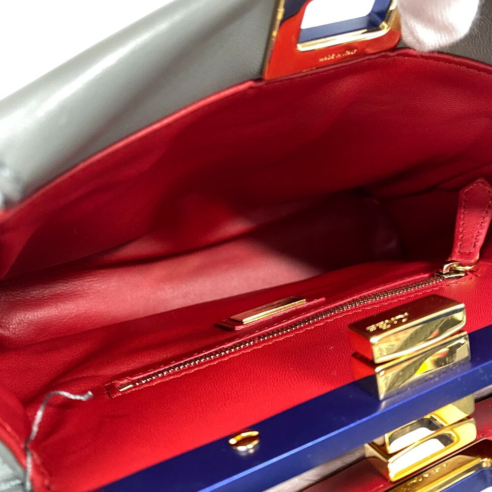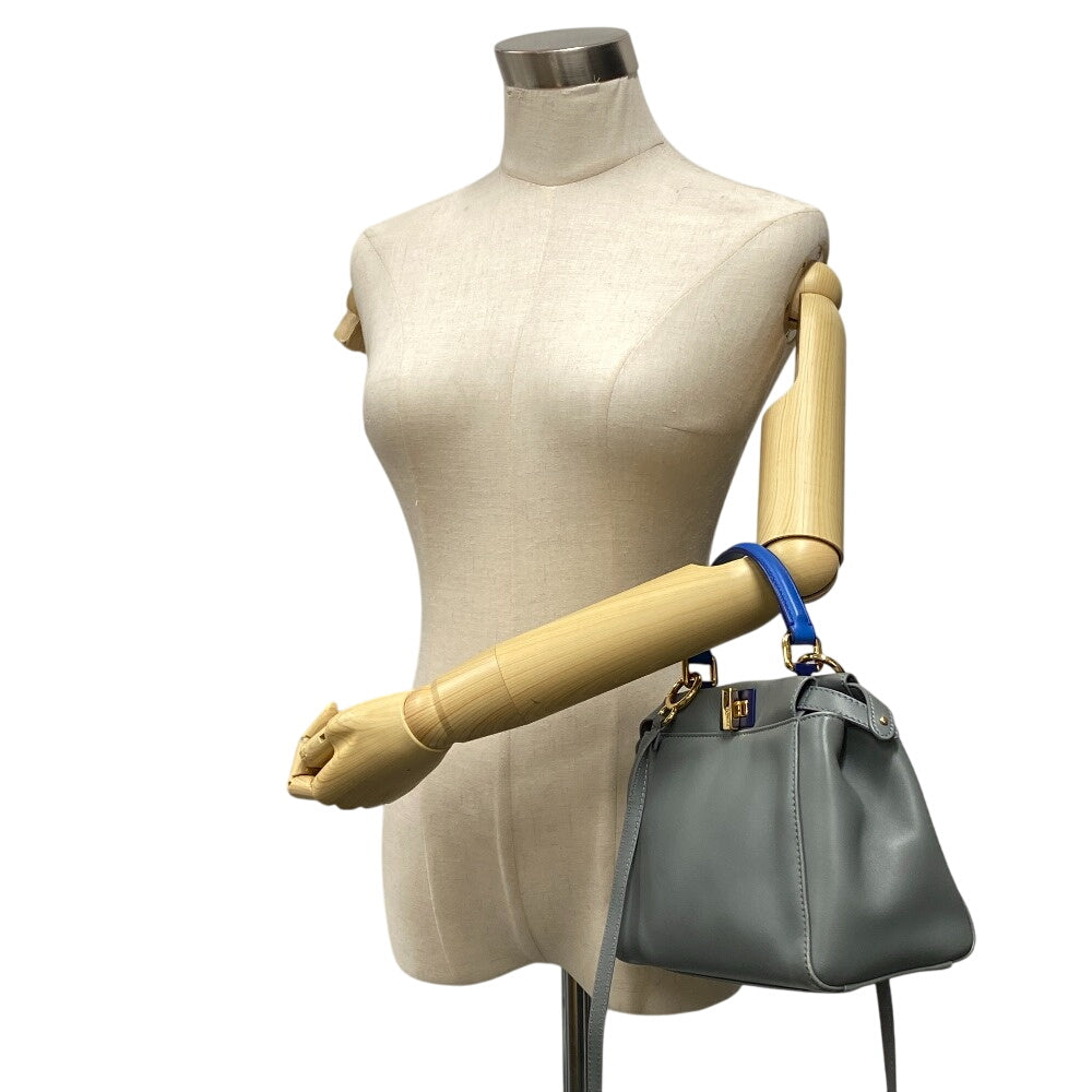 FENDI Handbag 8BN244 leather gray 2way Mini Pea Kaboo Women Used Authentic
