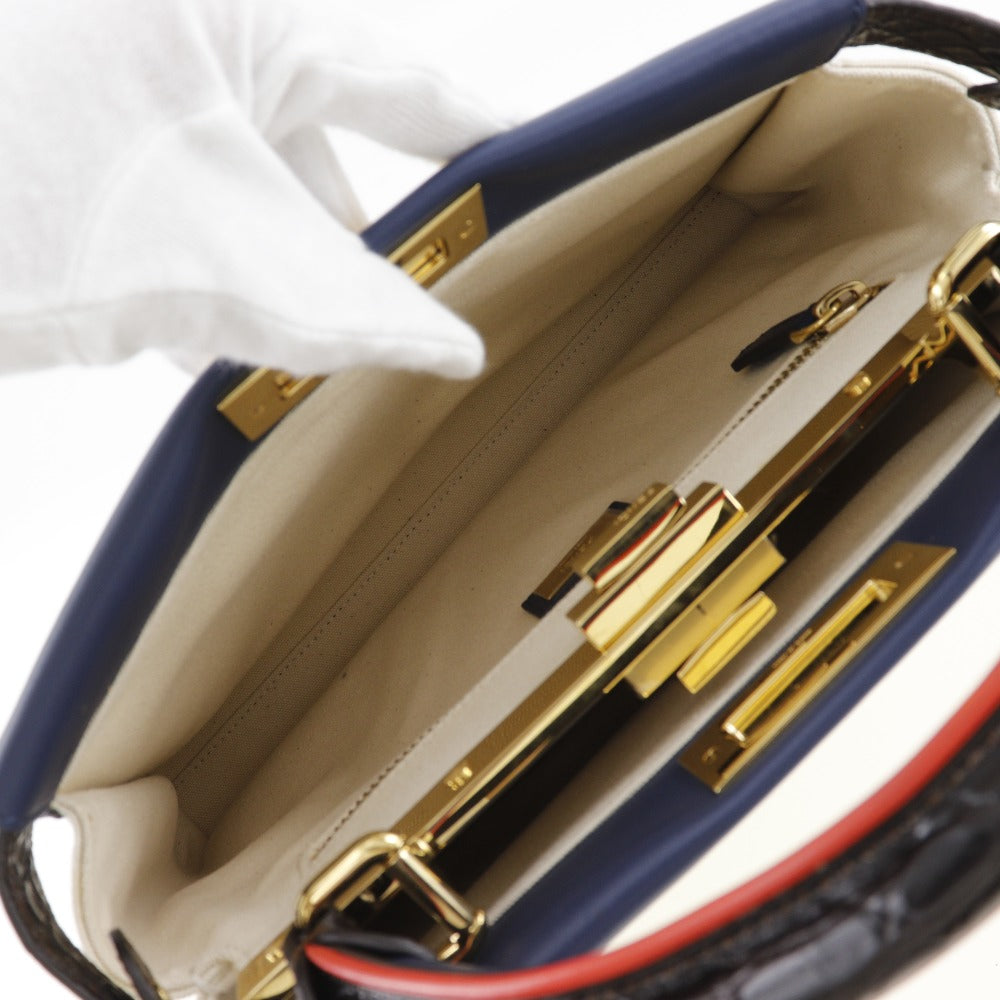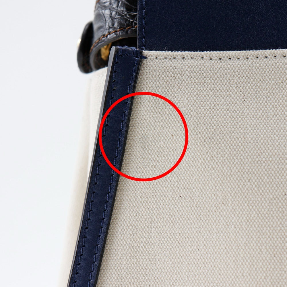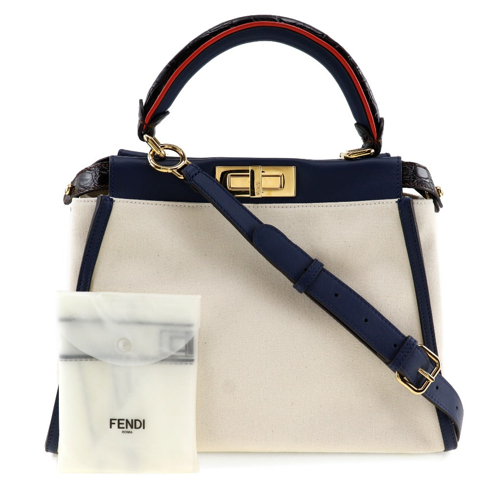 FENDI Handbag 8BN290 Canvas, Calfskin White / navy 2WAYShoulder Peekaboo Women Used Authentic