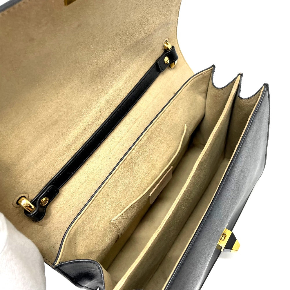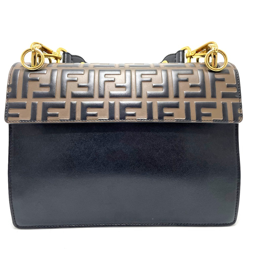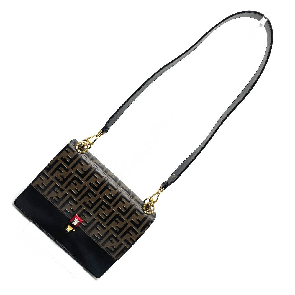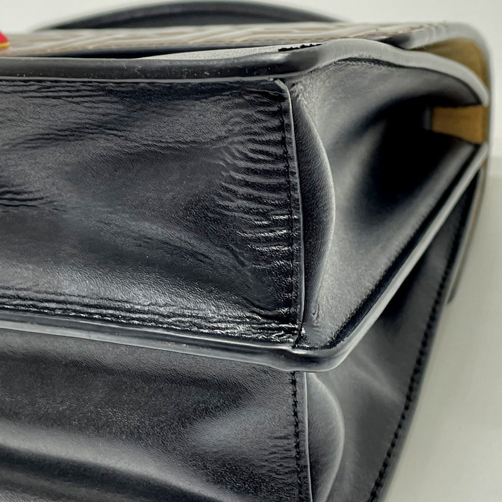 FENDI Handbag 8BT283 leather Brown x black FF Zucca Canai Women Used Authentic