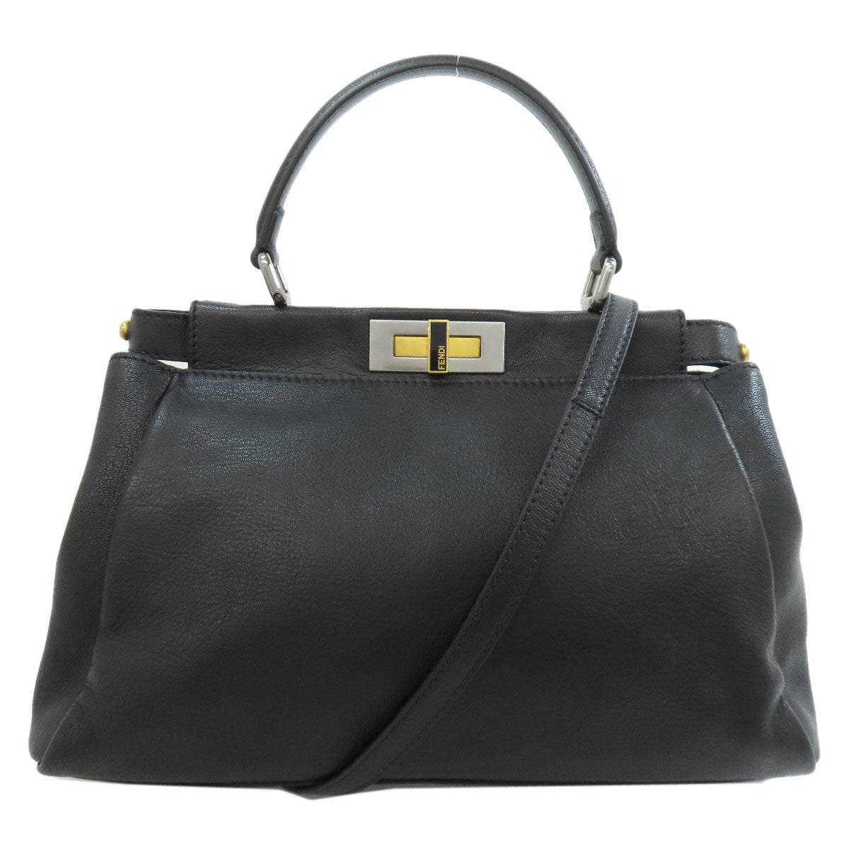 FENDI Handbag Calfskin black Peekaboo 2WAY Women Used Authentic