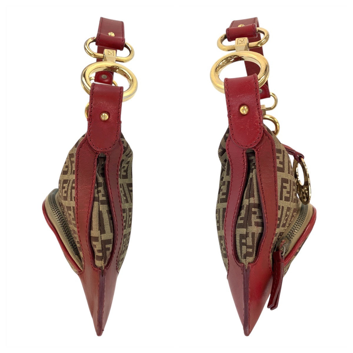 FENDI Handbag canvas Brown Red Gold Metal Zucchino