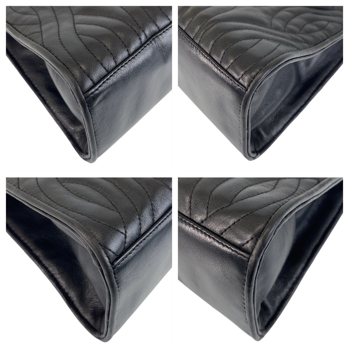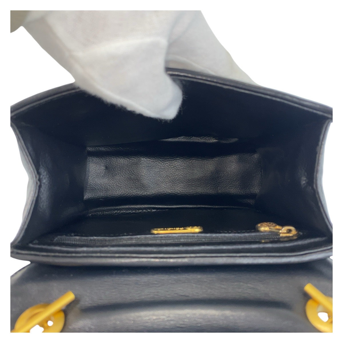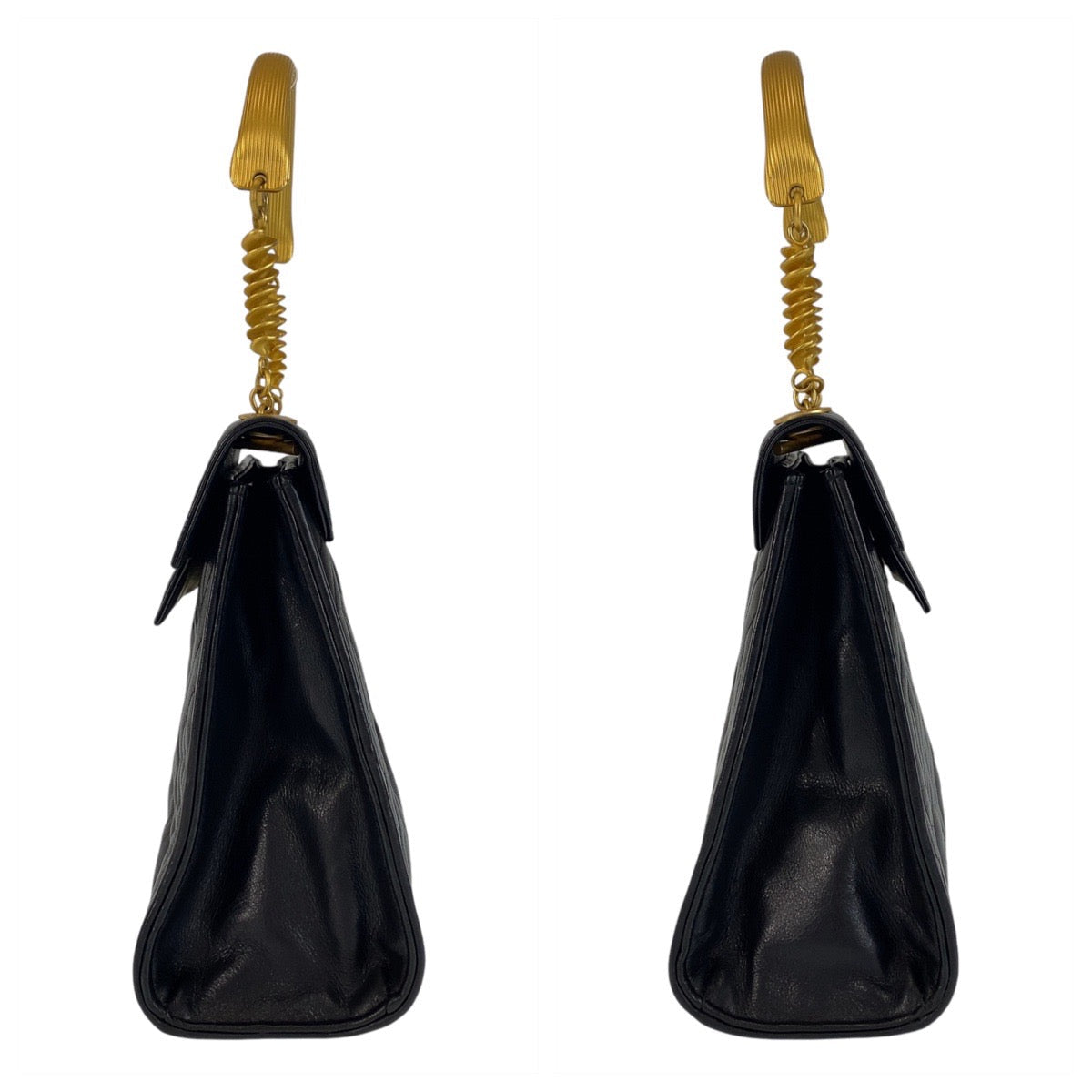 FENDI Handbag leather Black GoldMetal Handbag macaroni Women Used Authentic