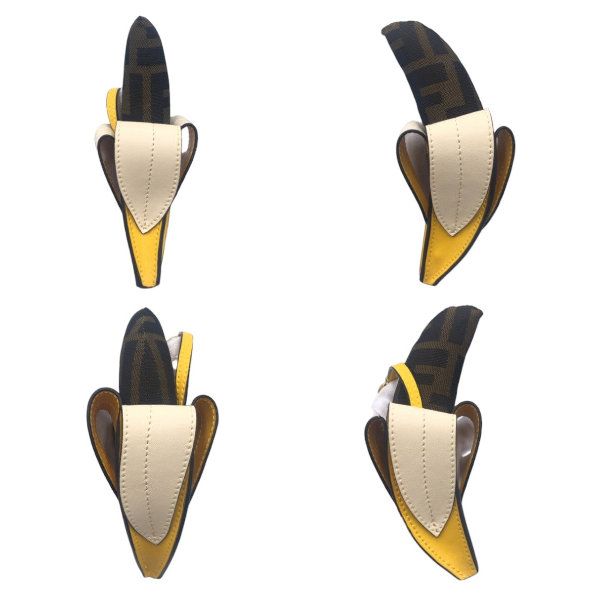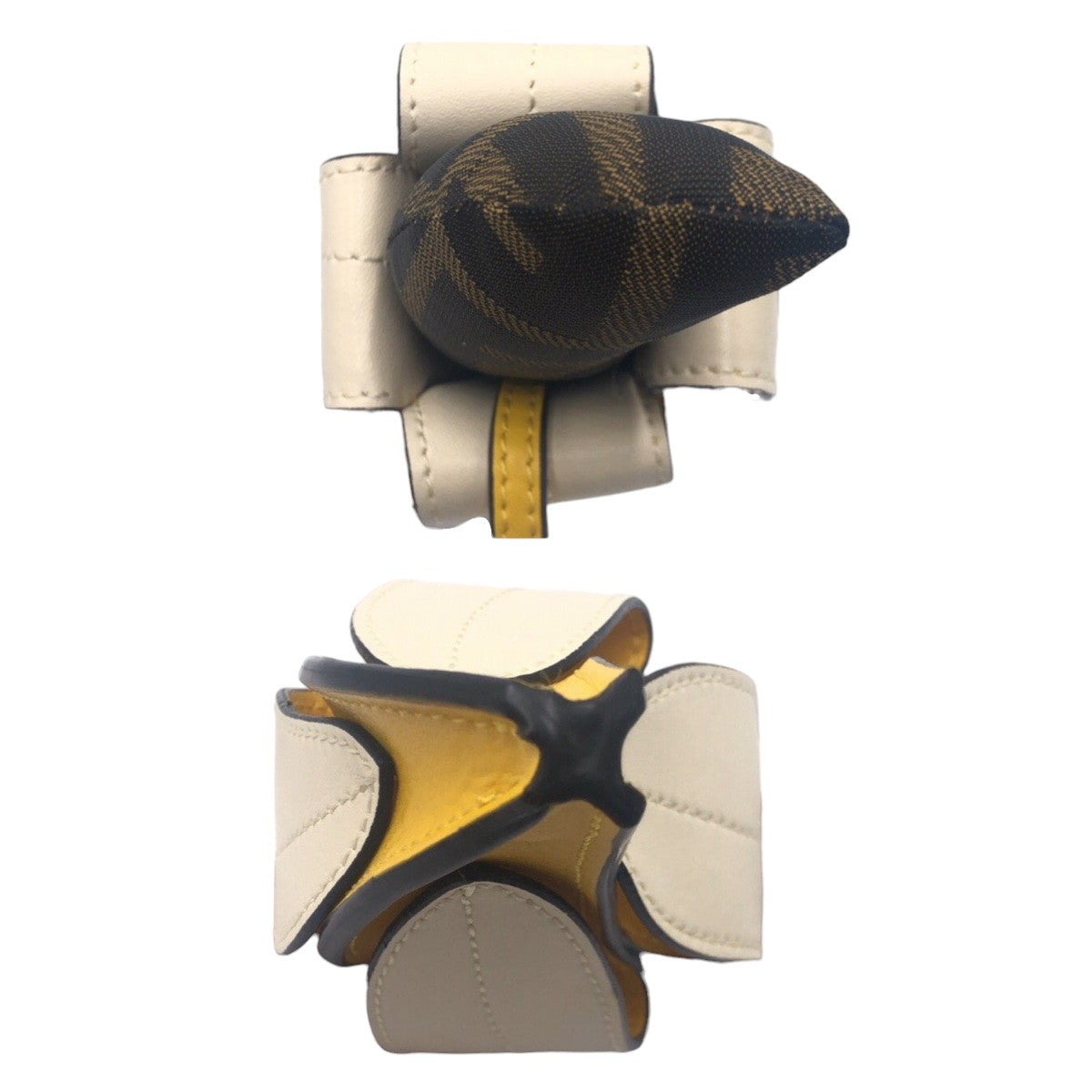 FENDI key ring Cotton, Metal Brown Yellow Gold Keychains Unisex Zucca Banana Women Used Authentic