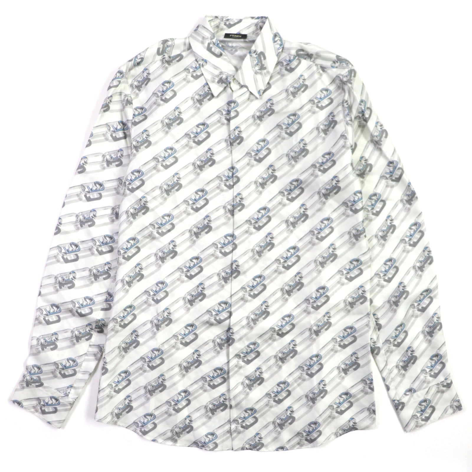 FENDI Long sleeve shirt FS0585 Main: 100% silk Light gray mens 39 Used Authentic