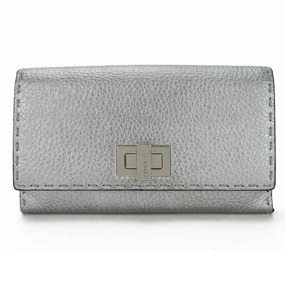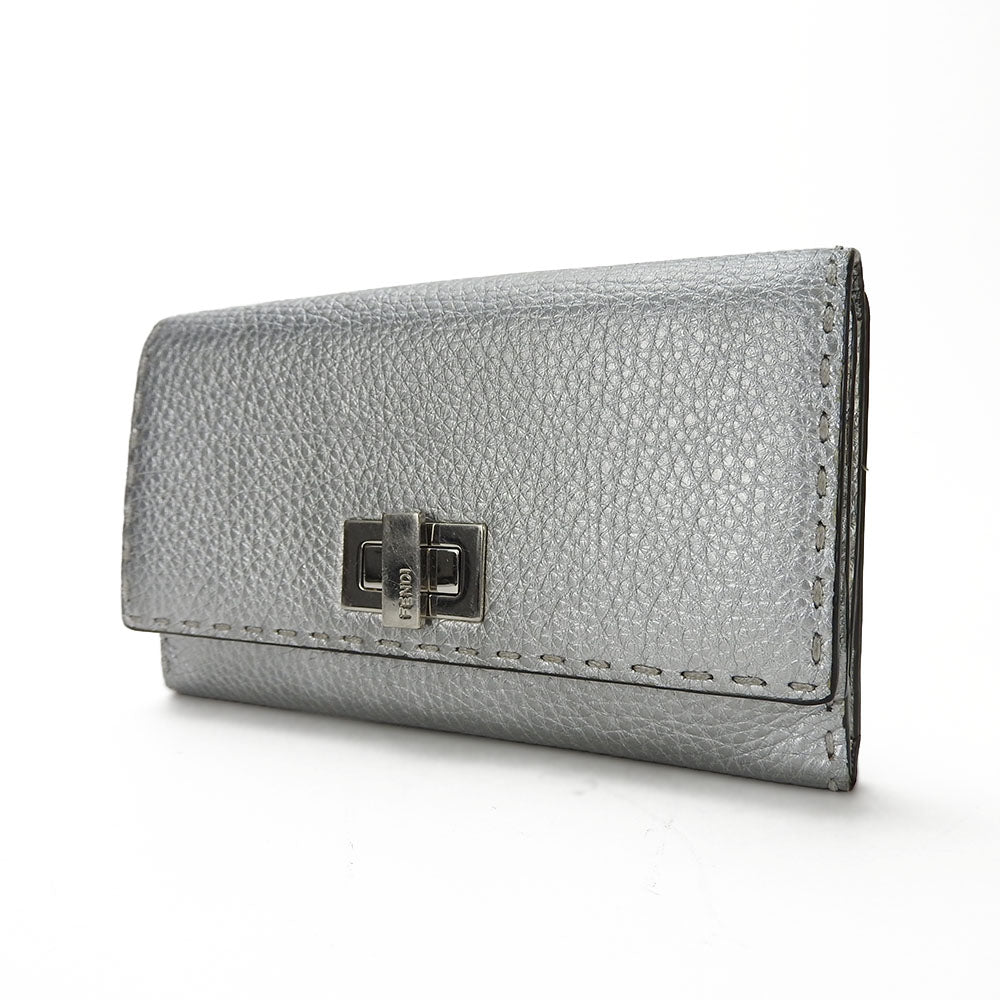 FENDI Long Wallet Purse 8M0308 leather Silver Celeria