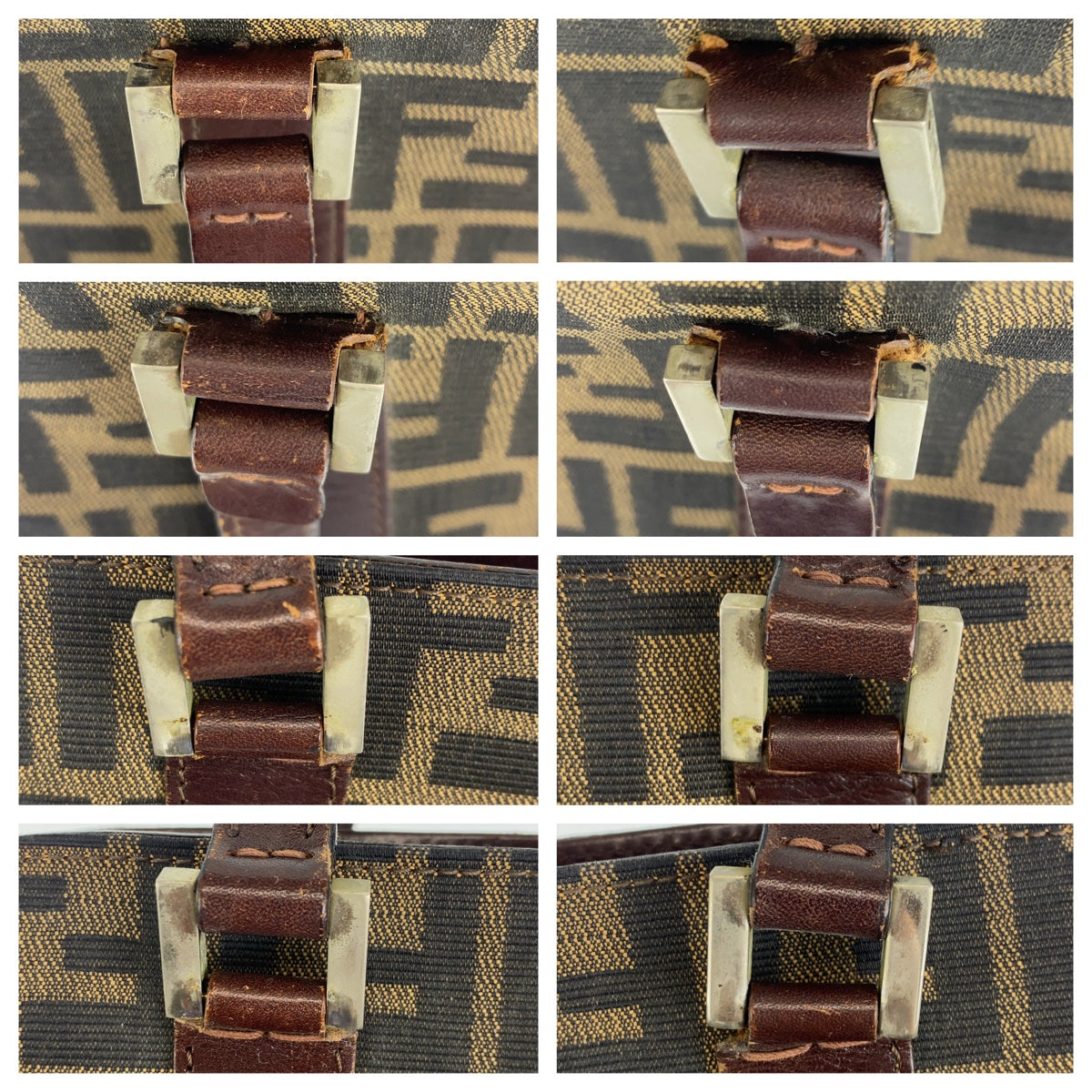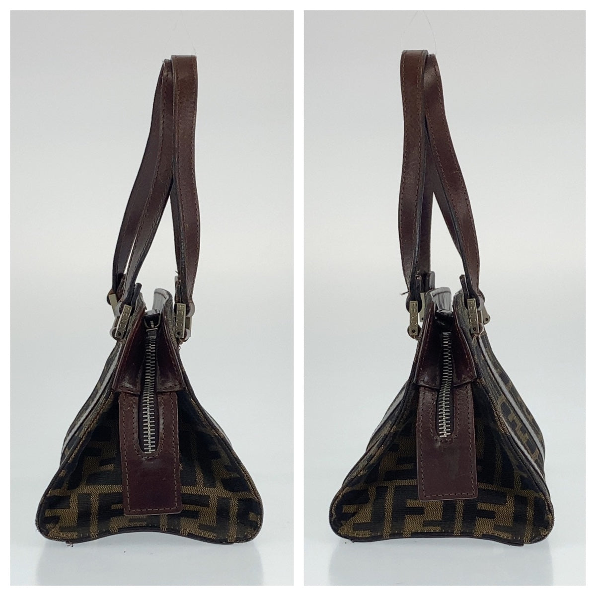 FENDI Shoulder Bag Canvas, Leather Brown Silver Metal Shoulder Bag Handbag Tote Bag Zucca Pattern Women Used Authentic
