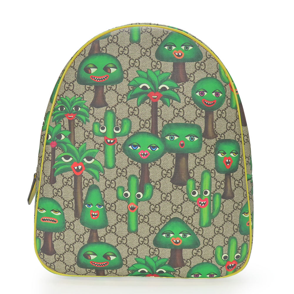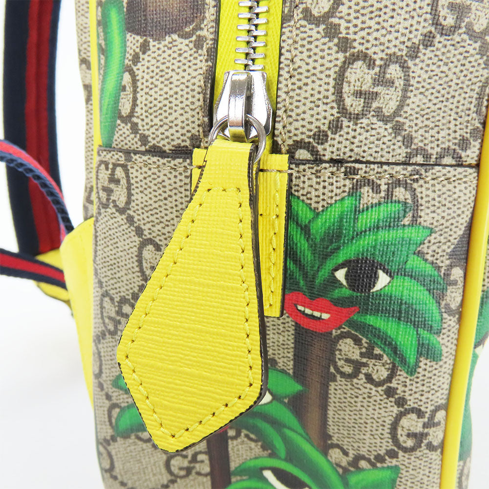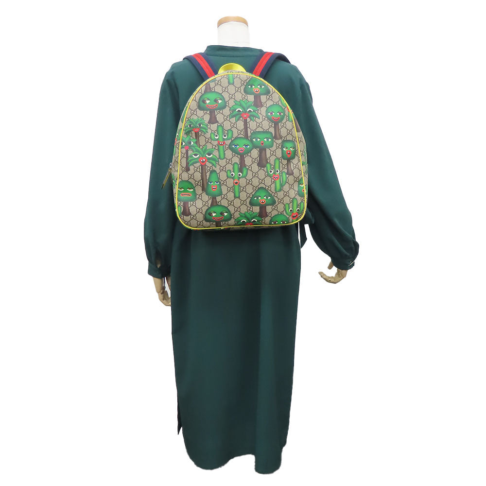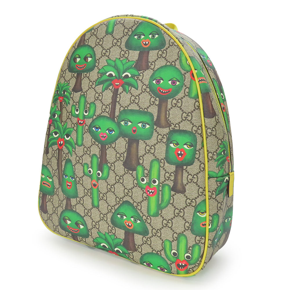 GUCCI Backpack 433578 GG Supreme canvas, leather beige Smiling Plant Chilled license Women Used Authentic