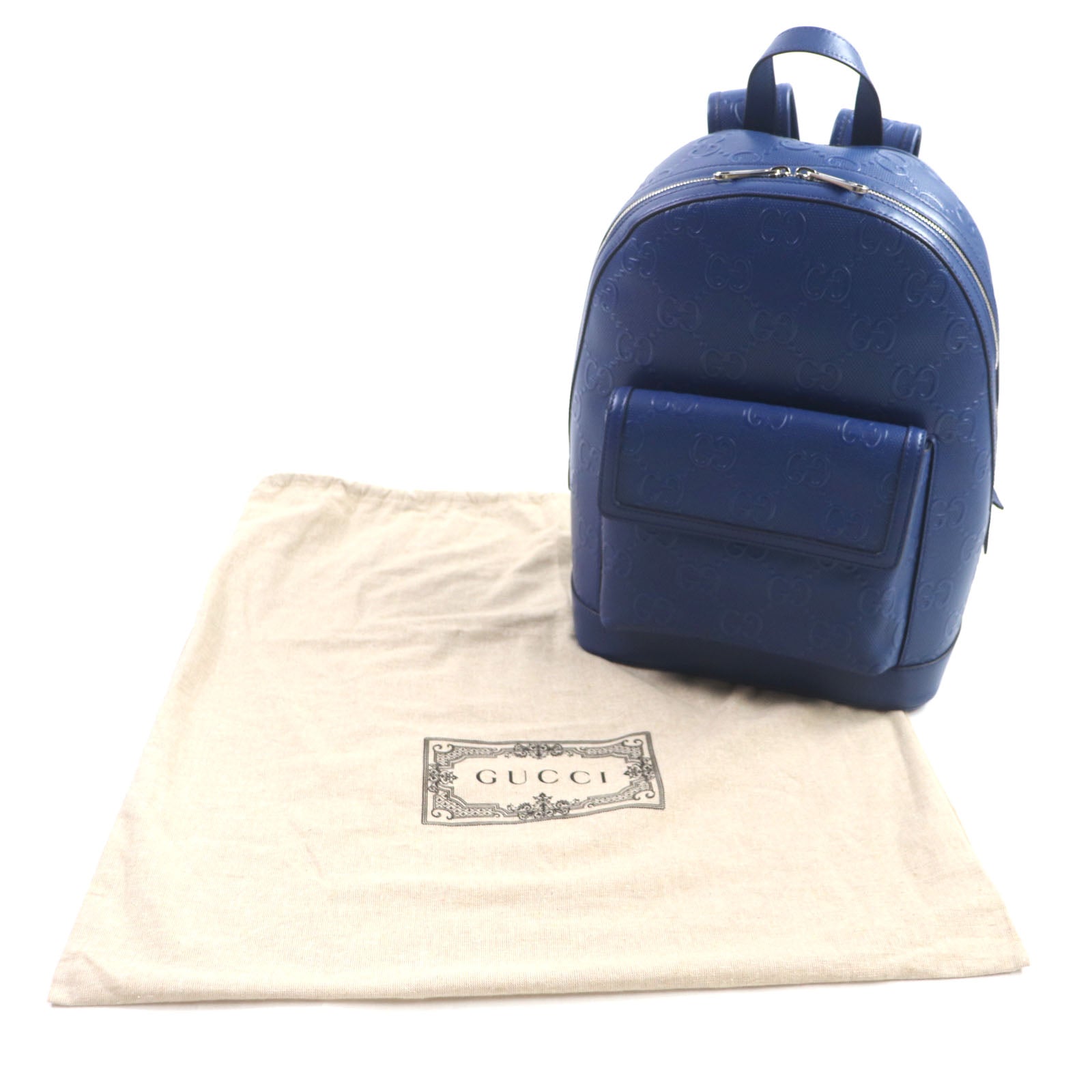 GUCCI Backpack 658579 Main: Leather blue GG emboss mens Used Authentic