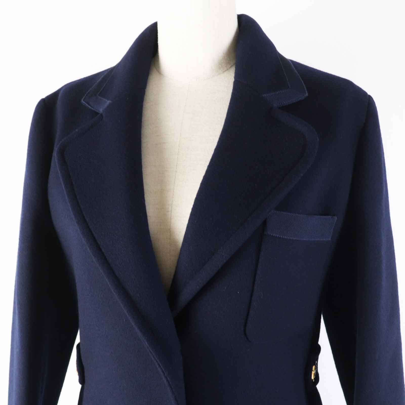 GUCCI Chester coat 669525 Outer: 98% wool, Outer: 2% nylon, Filling: 100% polyester, Lining: 100% rayon, Leather part: sheepskin Navy Women 38 Used Authentic