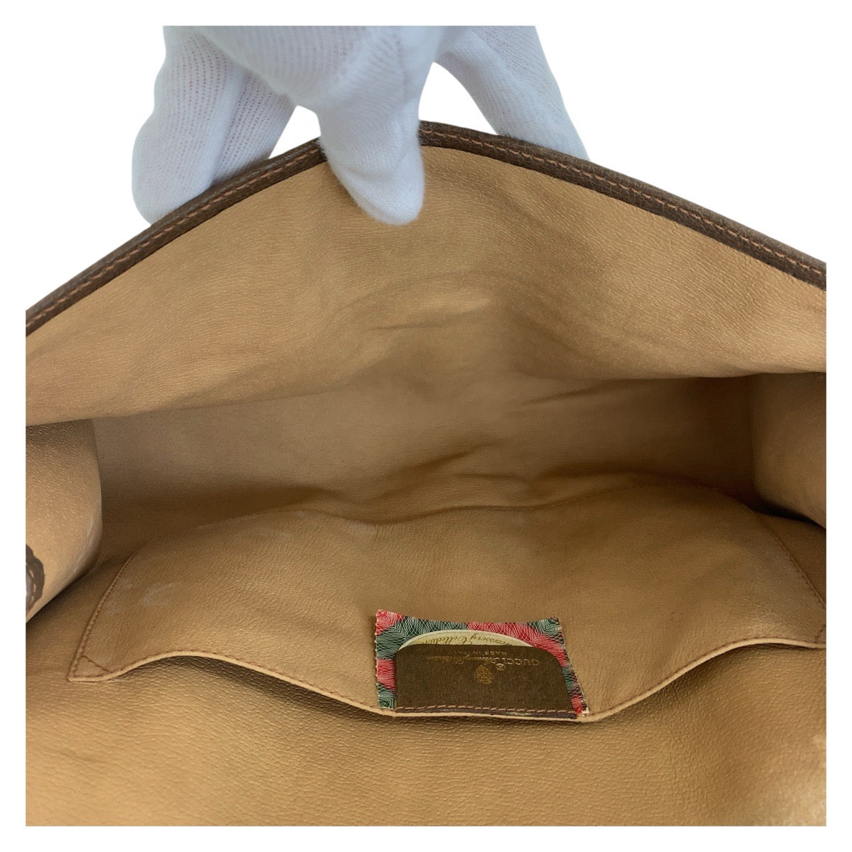 GUCCI Clutch bag 89 01 031 GG Supreme canvas, leather Beige Brown Gold Metal Clutch bag Sherry Line Old Gucci Women Used Authentic