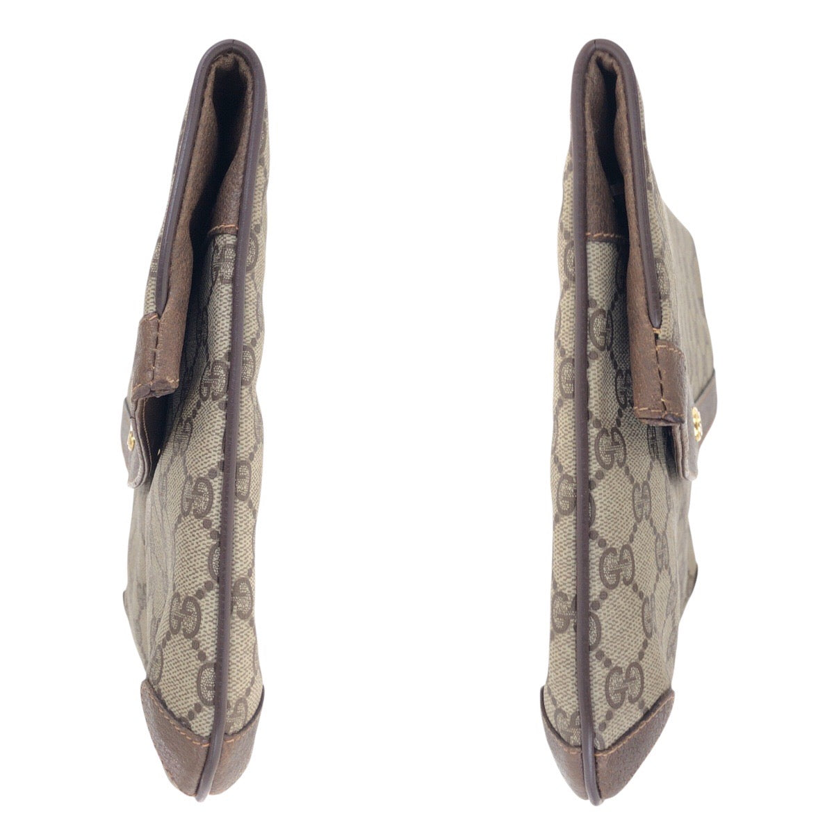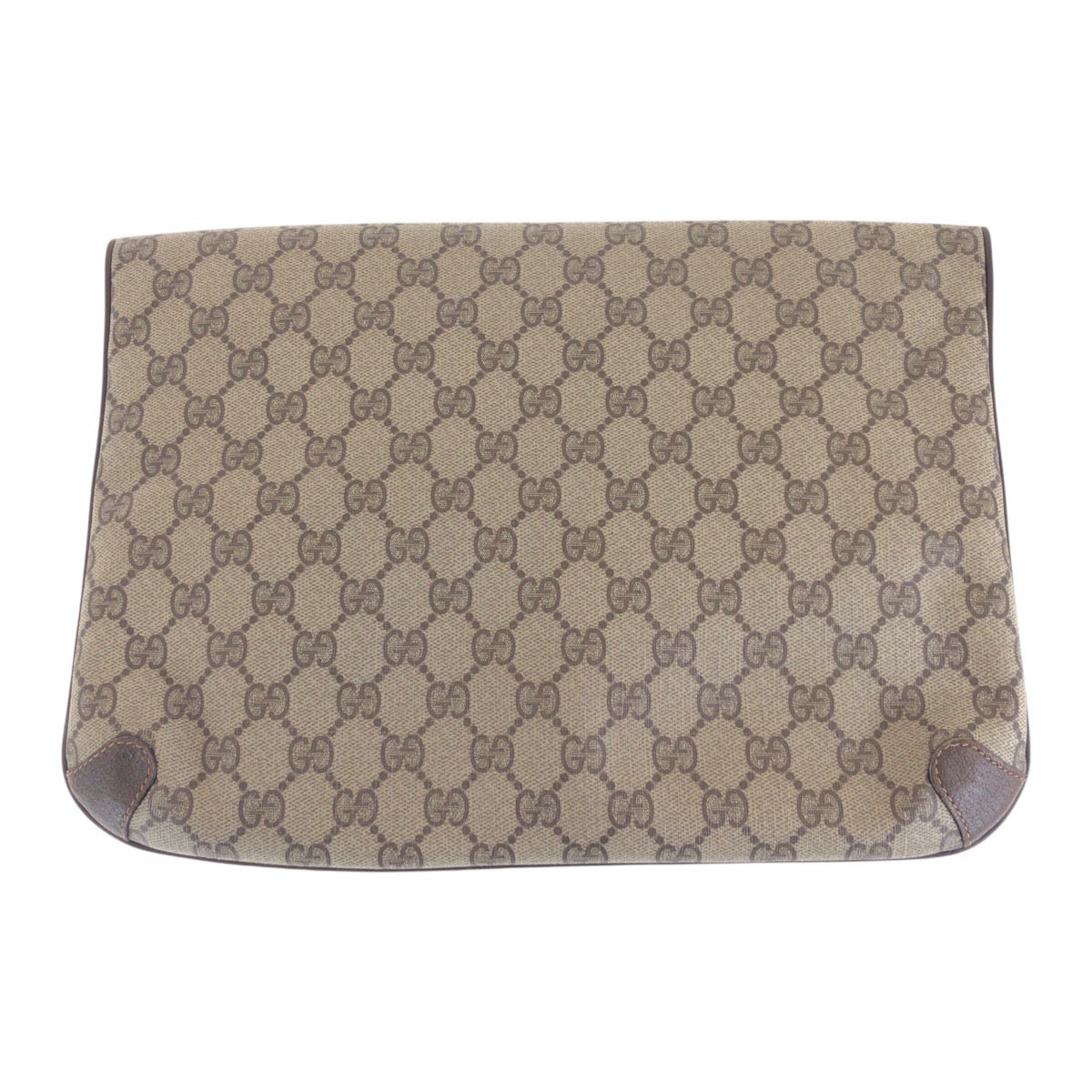 GUCCI Clutch bag 89 02075 GG Supreme Canvas Brown Beige Gold Metal Old Gucci