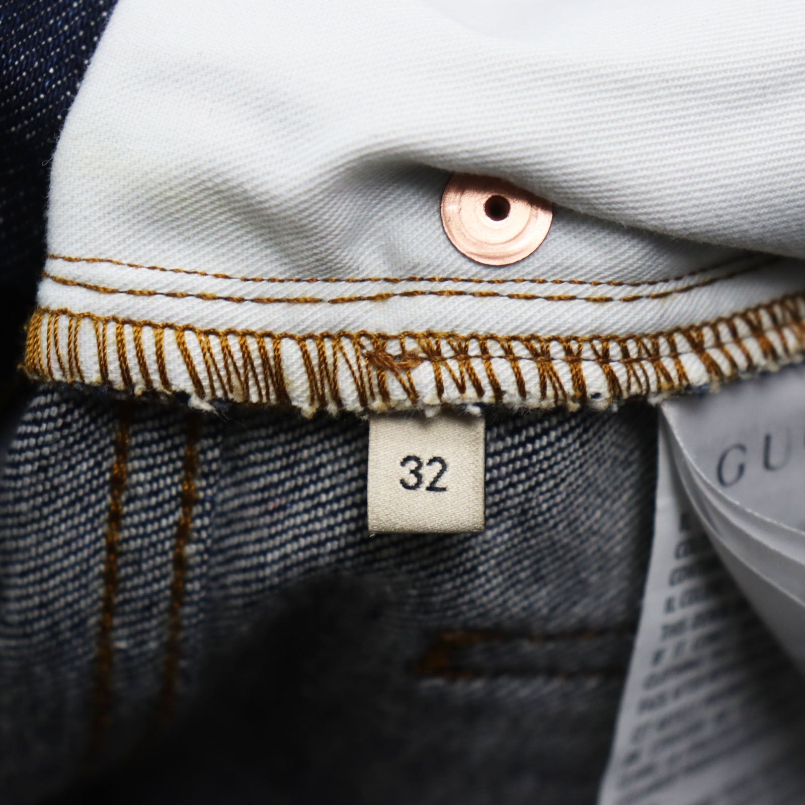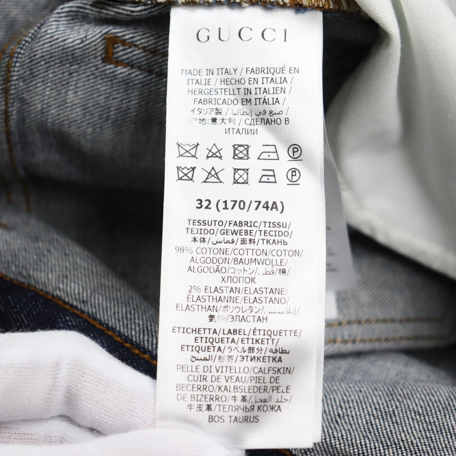 GUCCI Denim pants 623953 Main: 98% cotton, Main: 2% polyurethane acrylic, Part: leather Indigo blue Washed denim regular pants mens 32 Used Authentic