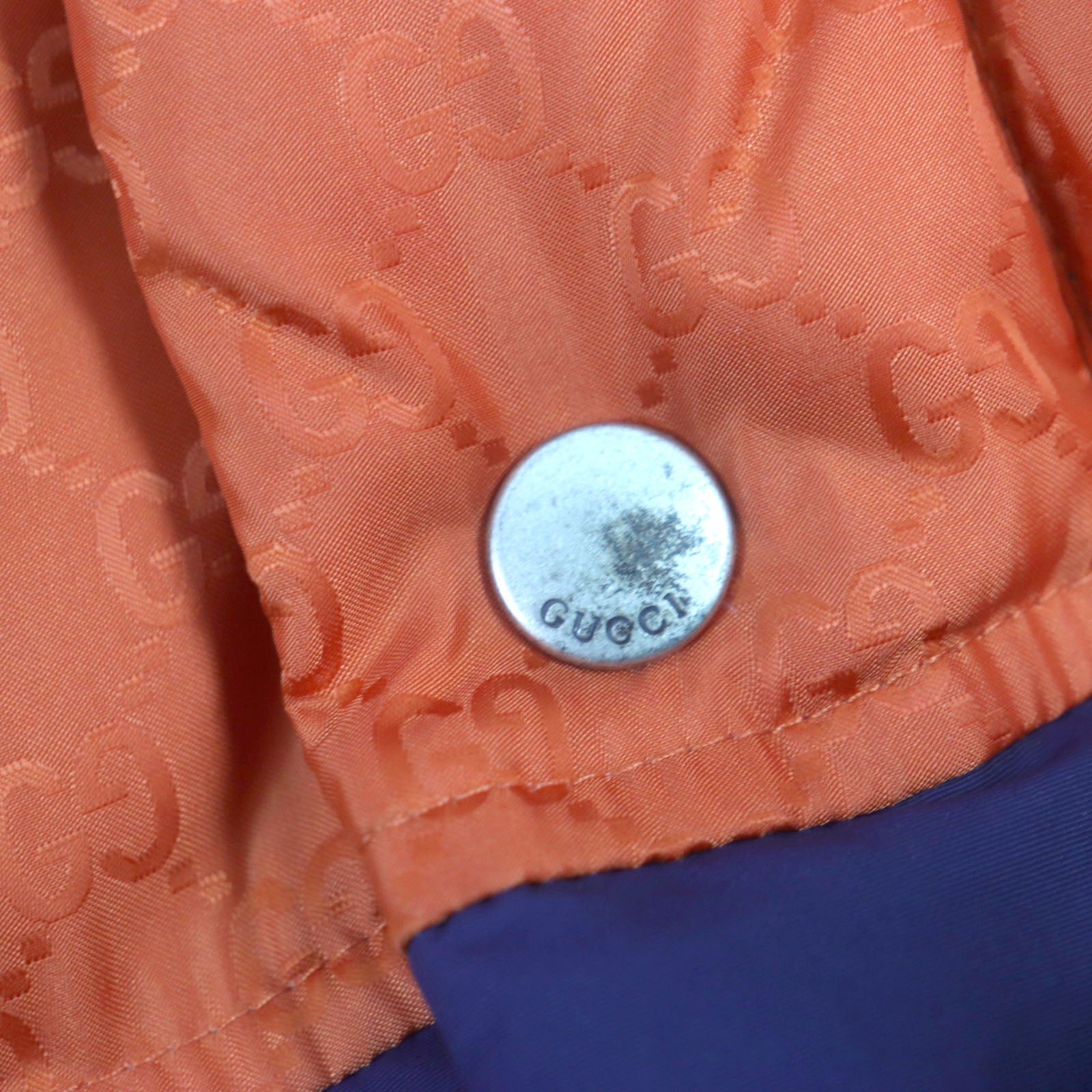 GUCCI Down jacket 598728 Outer: 100% nylon, Part: 100% nylon, Lining: 100% nylon, Filling: 100% polyester, Rib part: 100% wool, Filling: 90% down, 10% feather Orange navy mens 46 Used Authentic