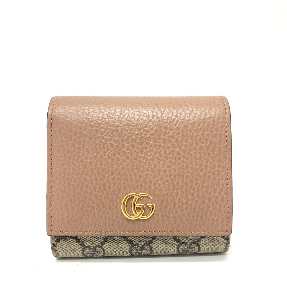 GUCCI Folded wallet 598587 GG Supreme canvas, leather beige GG Supreme Double G medium wallet Women Used Authentic