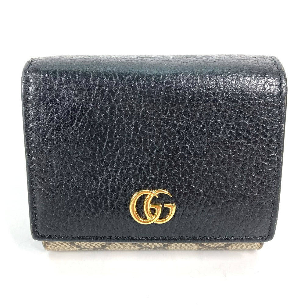 GUCCI Folded wallet 598587 Leather PVC beige GG Supreme GG Marmont Women Used Authentic