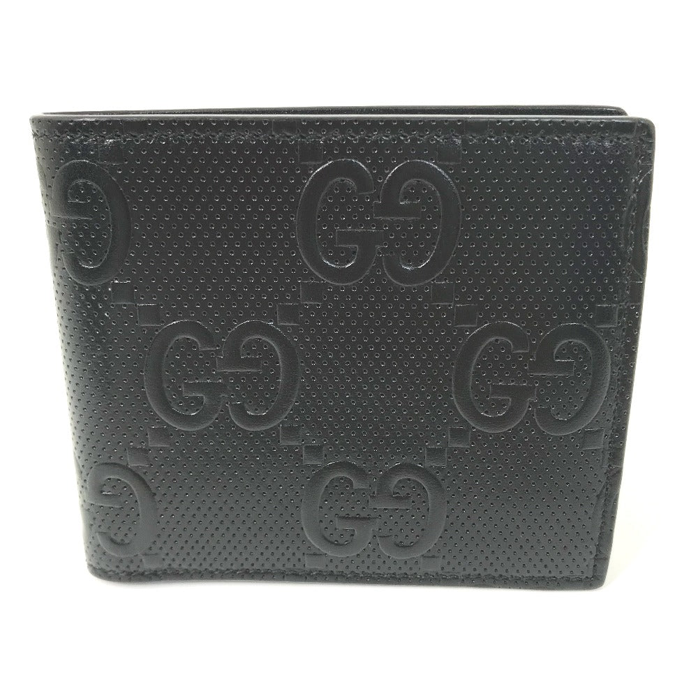 GUCCI Folded wallet 625555 leather black GG emboss mens Used Authentic