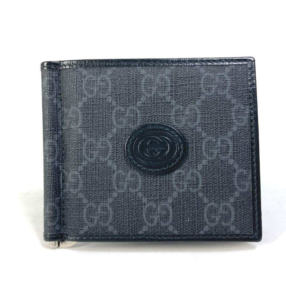 GUCCI Folded wallet 700686 GG Supreme Canvas black GG money clip Interlocking G Card Case Wallet mens Used Authentic