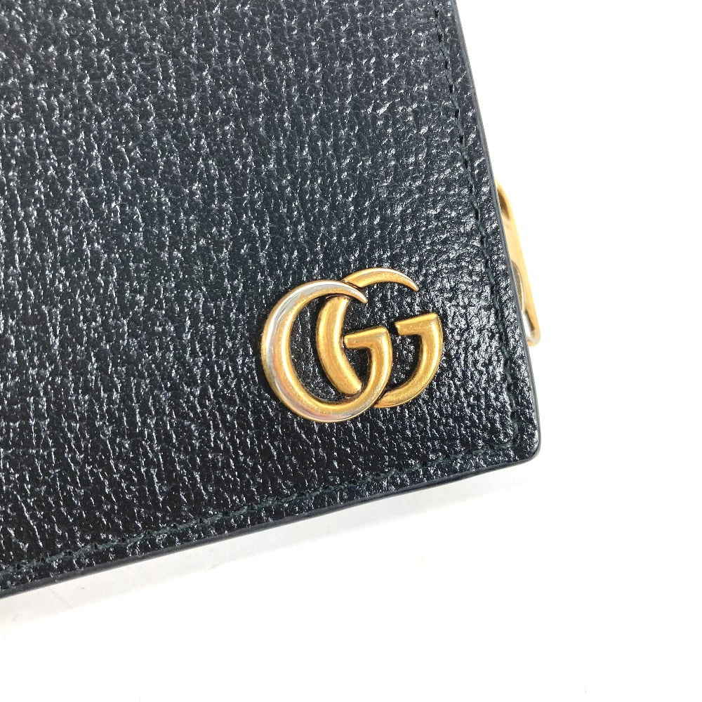 GUCCI Folded wallet 760223 leather black Double G Long Wallet Women Used Authentic