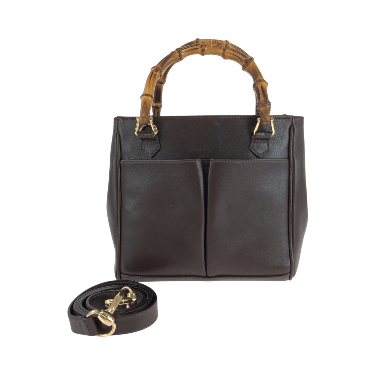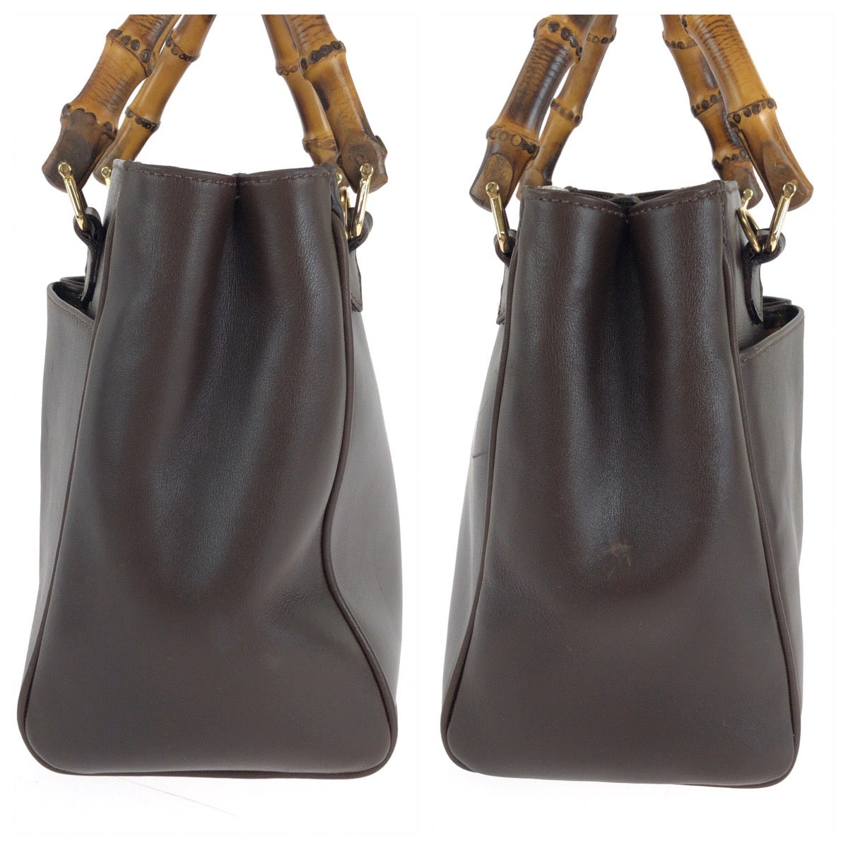 GUCCI Handbag 000 032 0015 leather Brown Gold Metal Shoulder Bag Handbag 2way Bamboo Women Used Authentic