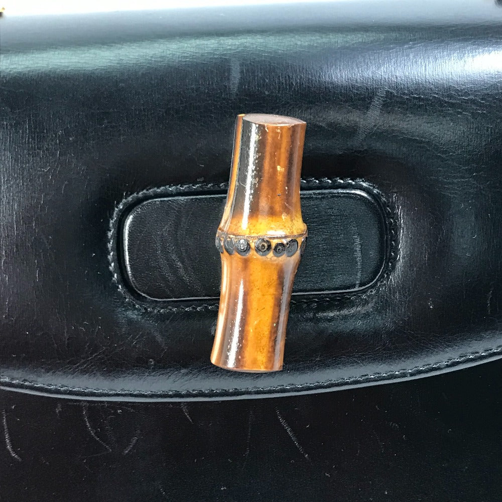 GUCCI Handbag 000 1951 Leather / Bamboo black turn lock old gucci Bamboo Women Used Authentic