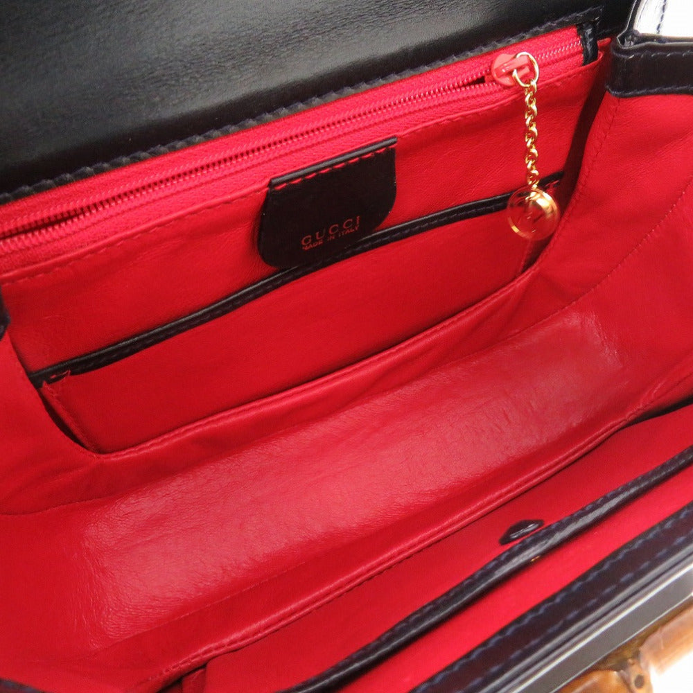 GUCCI Handbag 000 2046 0188 Bamboo, Leather Navy Women Used Authentic