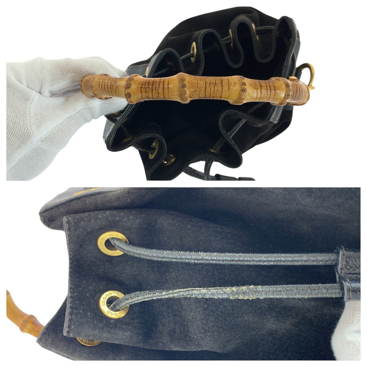 GUCCI Handbag 001 2040 1657 Suede, Leather Black Gold Metal Bamboo Women Used Authentic