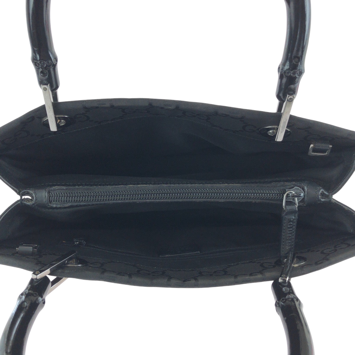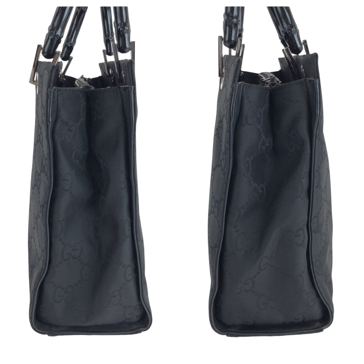 GUCCI Handbag 002 1016 Nylon black Handbag Tote Bag Bamboo Women Used Authentic