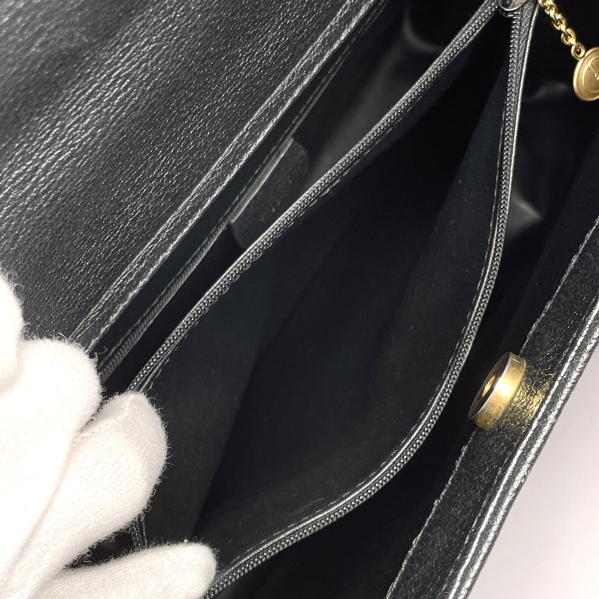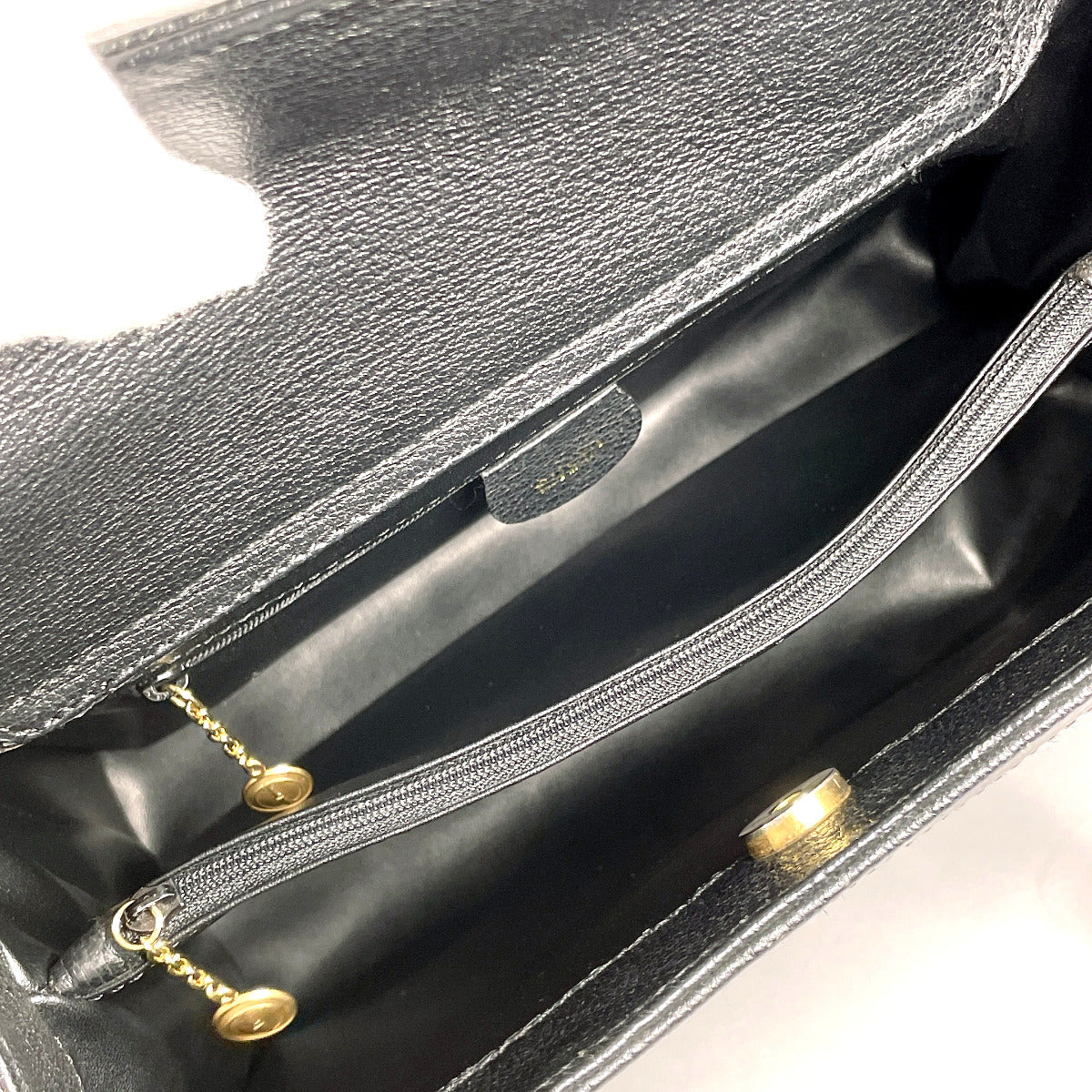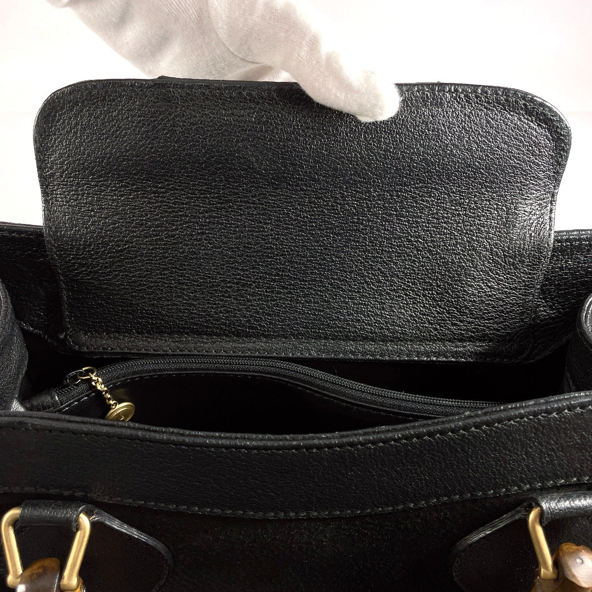 This is a very clean used item. There are no noticeable stains or stickiness, and the inner pocket is in very good condition.