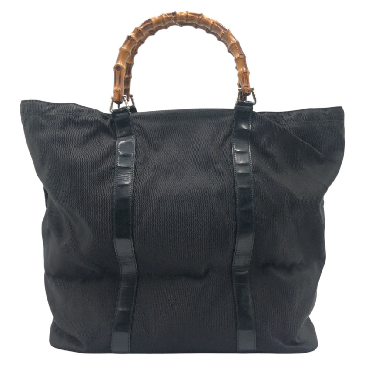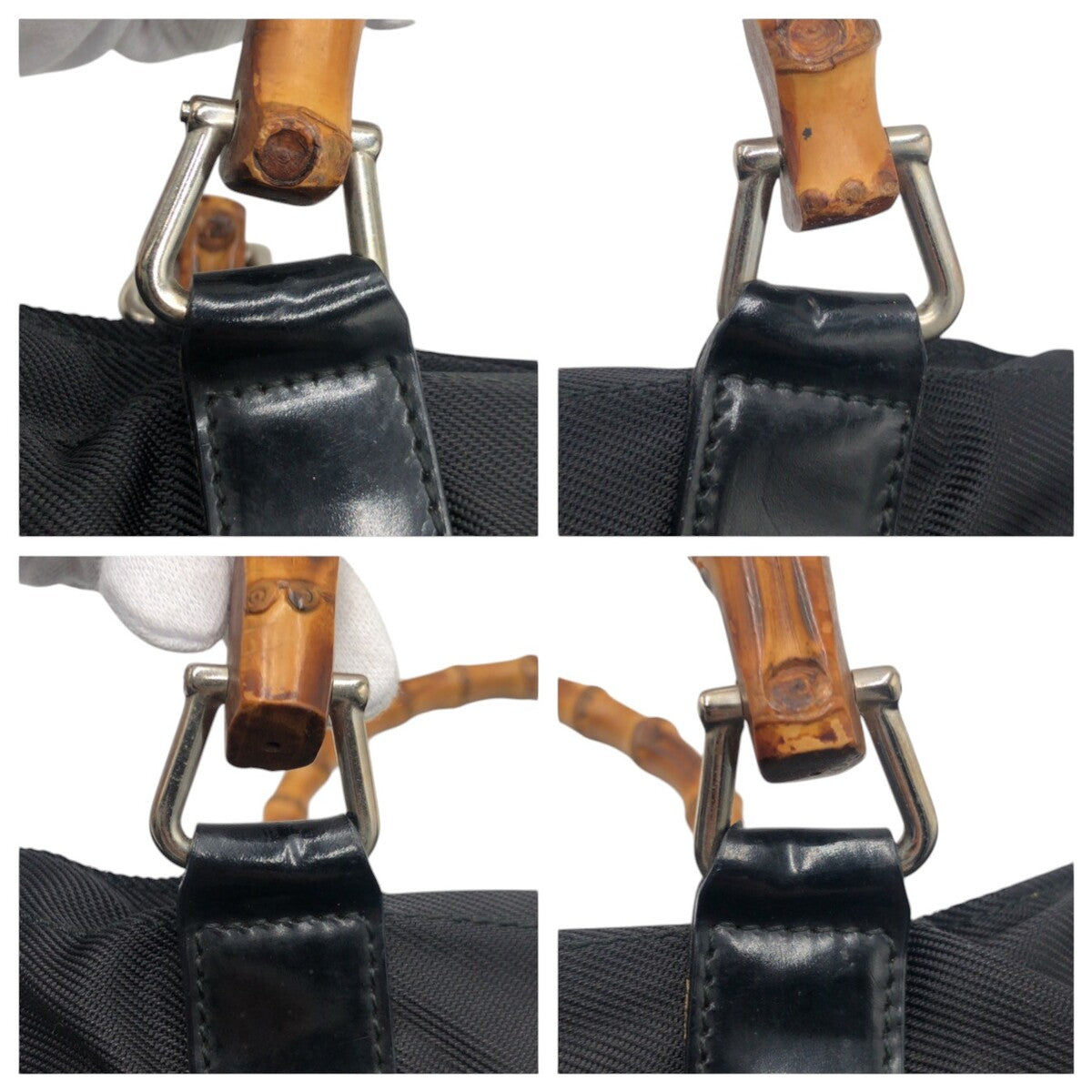 GUCCI Handbag 002 2058 0412 5 cotton black Handbag Tote Bag Bamboo Women Used Authentic