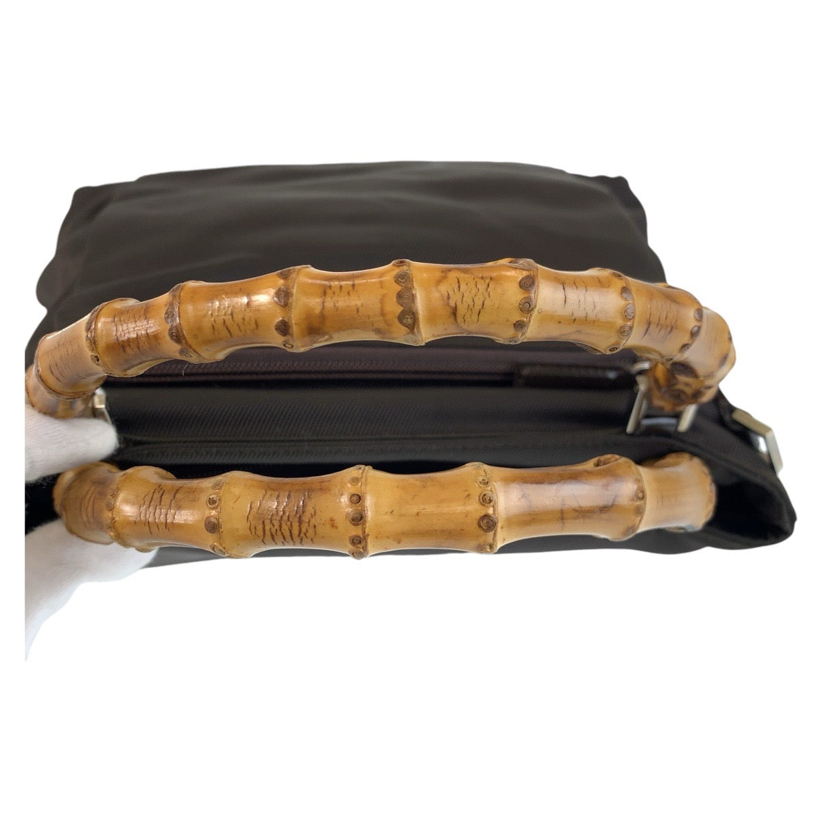 GUCCI Handbag 002 2058 0508 5 Nylon, Bamboo Brown Silver Metal Handbag Shoulder Bag 2way Bamboo Women Used Authentic