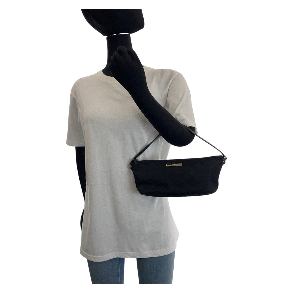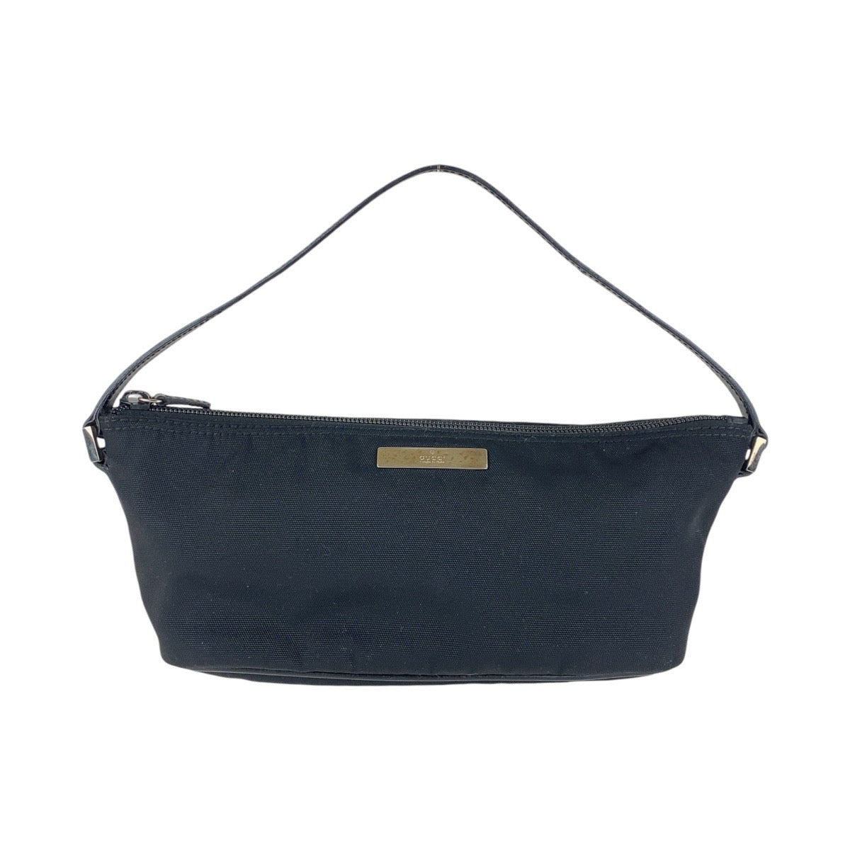 GUCCI Handbag 039 1103 Nylon Black Silver Metal Handbag accessory pouch Women Used Authentic