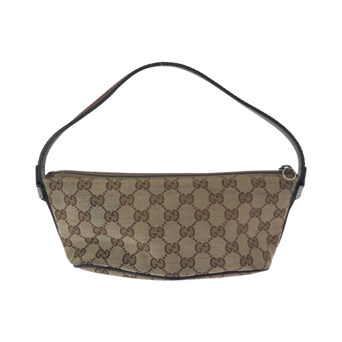 GUCCI Handbag 141309 GG canvas Beige Brown SilverMetal Handbag accessory pouch Sherry line Women Used Authentic
