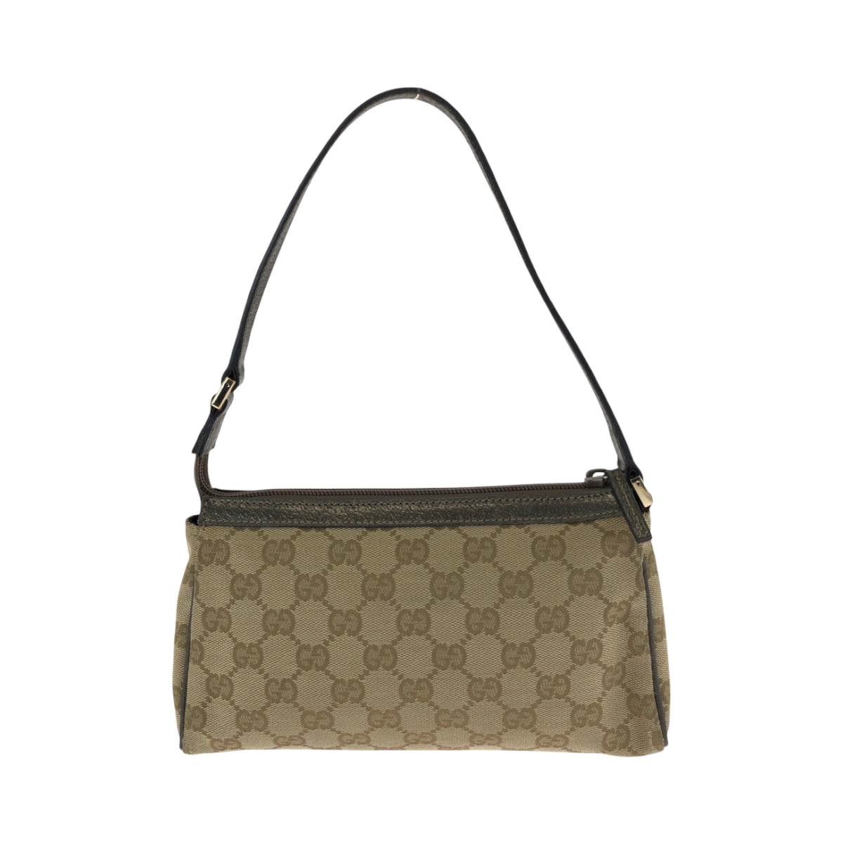 GUCCI Handbag 145750 canvas Brown Metallic Khaki Gray GoldMetal Handbag accessory pouch Women Used Authentic