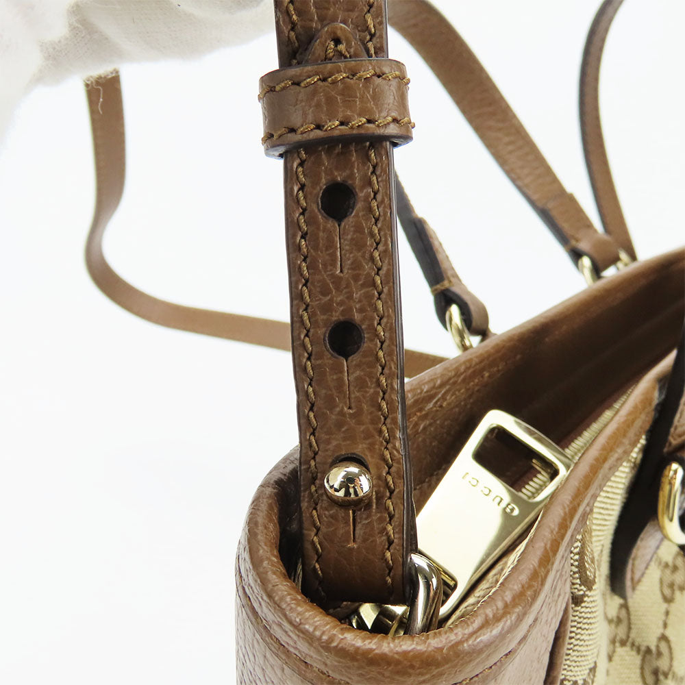 GUCCI Handbag 449241 Leather, GG canvas Brown Women Used Authentic