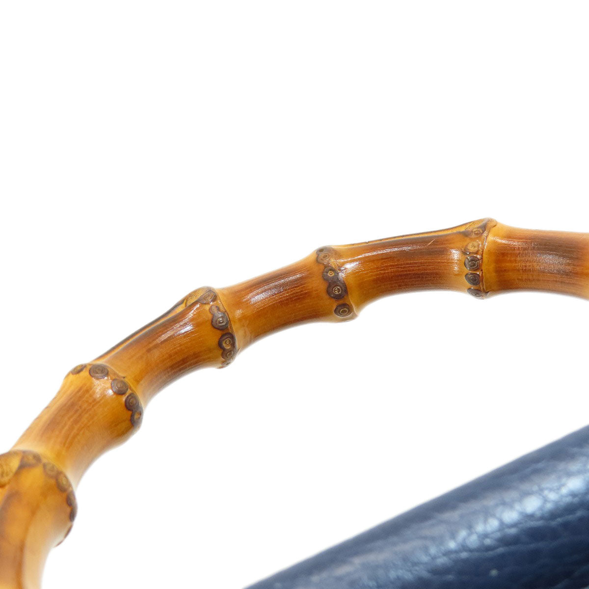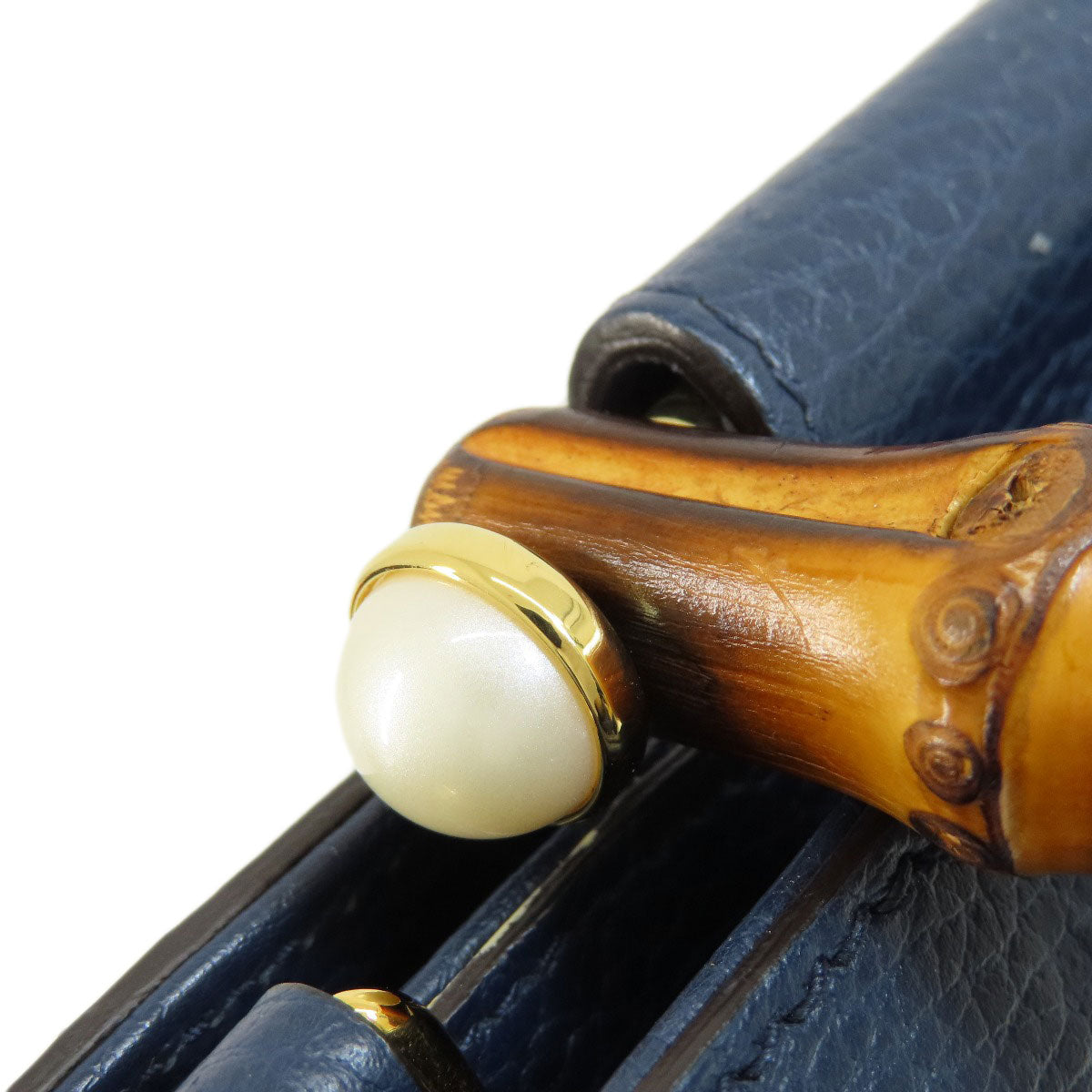 GUCCI Handbag 459076 Calfskin Navy Bamboo 2WAY Women Used Authentic
